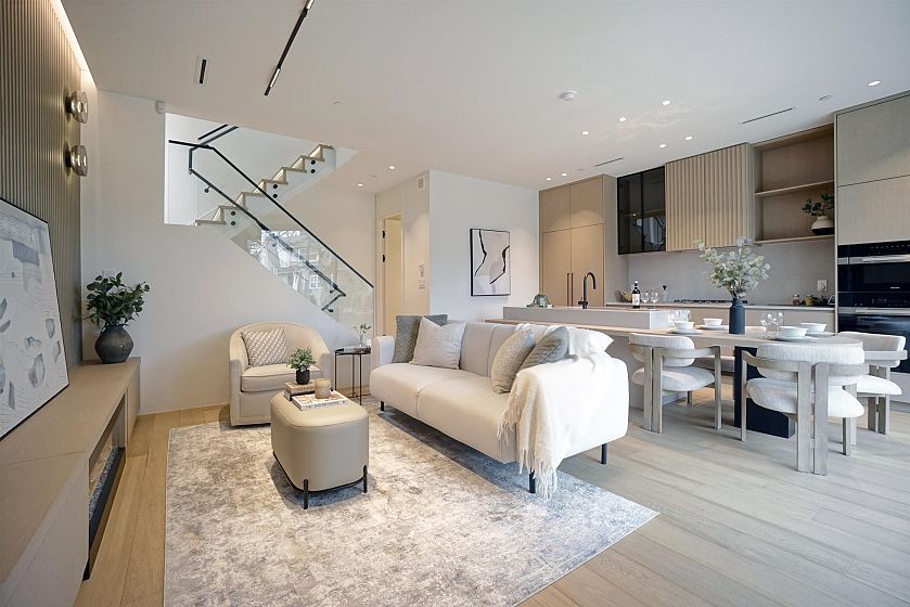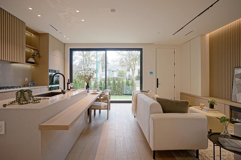 Brand new duplex front-unit in Point Grey with NO strata fees, offering exceptional value and the feel of a detached home with its own front yard and private entry. This luxury home features 4 bedrooms and 4 bathrooms with a functional 3-level layout and a top-floor primary suite, plus a lane-access single garage enhancing the single-family home feel. Developed by Highmont and built by Vanvy Construction, featuring triple-glazed windows, radiant floor heating, A/C and heat pump, enhanced ceiling heights, smart home integration, full-floor crawl space for storage, EV charger in the garage, and Miele appliances. Located on a quiet tree-lined street in the Queen Elizabeth & Lord Byng catchment, minutes to UBC, Jericho Beach and West 10th amenities. Move-in ready.