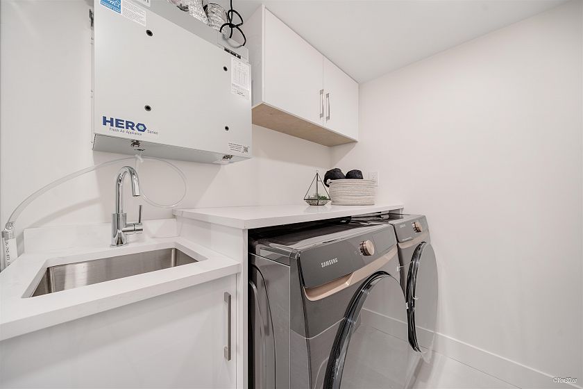 Four Story 1/2 Duplex nestled on a quiet tree-lined street steps from the amenities of South Vancouver minutes away from airport and Richmond. This side-by-side design gives you 2000sf of interior space which seamlessly transitions into an incredible outdoor entertainment space with firepit and bbq area for the indoor/outdoor living. Large and open main floor plan featuring a chef's kitchen with Fisher & Paykel Appliances. Upstairs 3 bedrooms and 2 baths including principal bedroom with ensuite. The 4th floor also has an extra living/entertainment space, Two Bedroom Legal Suite In Basement. Other property features: Engineered flooring and Double glaze windows. Open house: Mar 7 Sat @2-4pm.