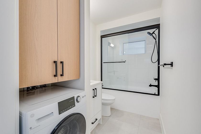 Experience modern living and exceptional functionality in this beautifully built 4-bed, 3.5-bath + den 1/2 duplex in a welcoming family-neighborhood. The main floor features a bright open-concept layout with a sleek kitchen equipped with premium Fisher & Paykel appliances, quartz countertops and a generous island, perfect for meal prep and gatherings. Upstairs, you'll find 3 spacious bedrooms and 2 bathrooms, including a luxurious primary suite with a spa-like ensuite and mountain views. The basement boasts a one-bedroom suite, ideal for rental income or extended family. This home is complete with custom built-in wardrobes, in-floor heating, A/C, security cameras, private yard and one-car garage. Enjoy the perfect balance of luxury living and everyday convenience.