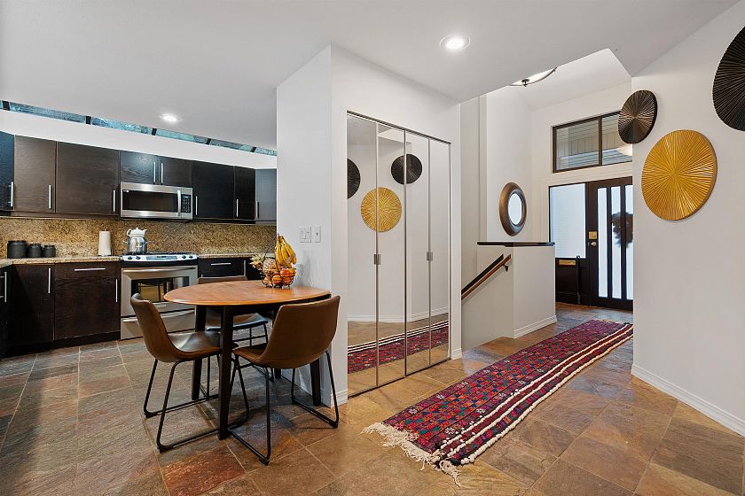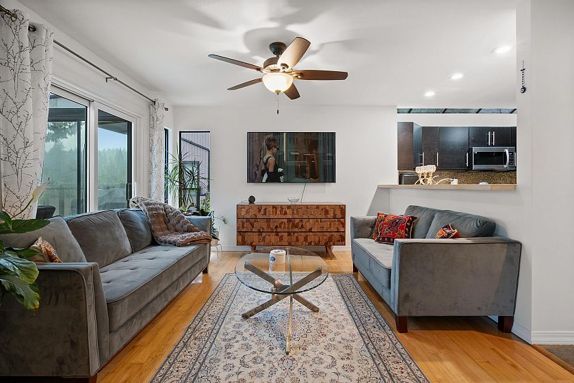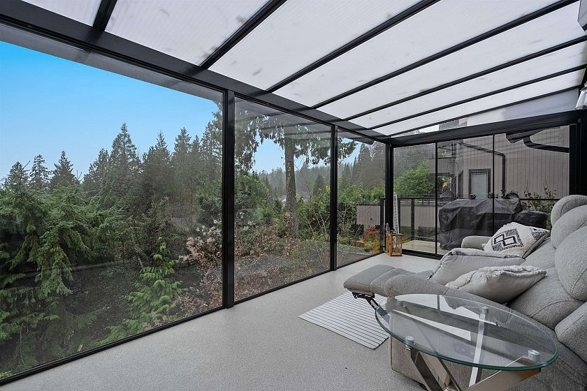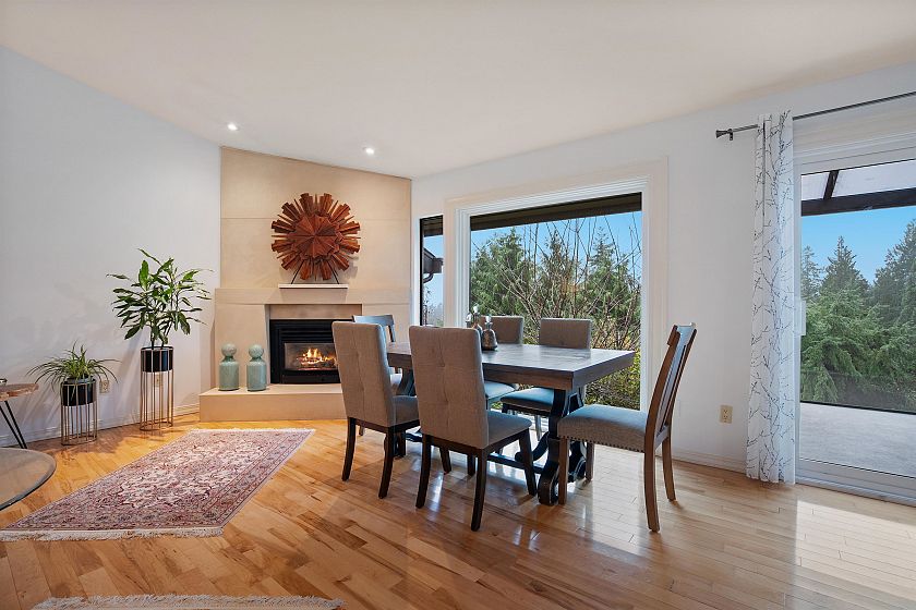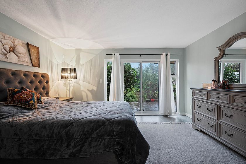 Tucked away on a quiet cul-de-sac in the heart of Grousewoods, this beautifully maintained reverse plan 1/2 Duplex invites you into spacious comfort and stunning southwest views of water and mountain. Vaulted ceilings, warm hardwood and slate floors and a bright solarium upstairs set the stage for open concept living and entertaining. Downstairs, three generous bedrooms including the primary bedroom with walk-in-closet and heated floor ensuite walk our to a newly built patio and landscaped garden , perfect for relaxation. The bonus is a large rec room that easily works as a fourth bedroom, or the guest room. You're minutes to Grouse Mountain, hike trails at your doorstep and the tennis courts and soccer field just a block away. This is a rare blend of lifestyle, comfort and location.