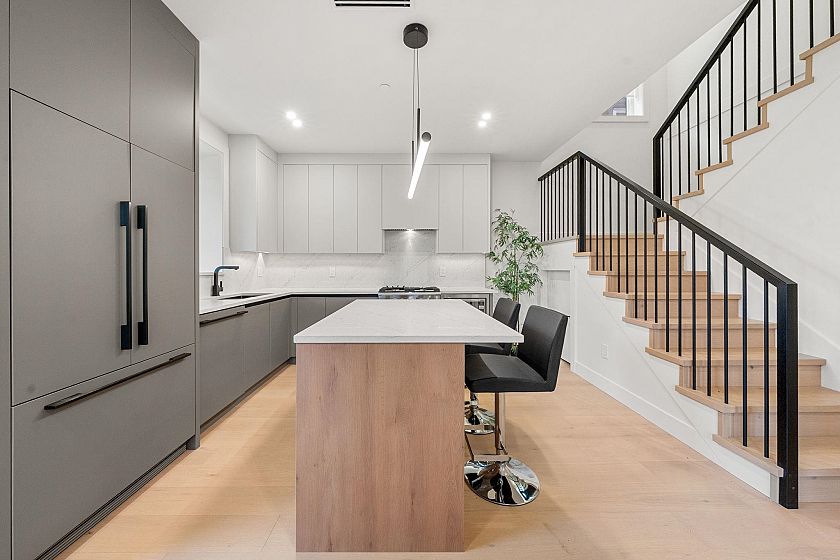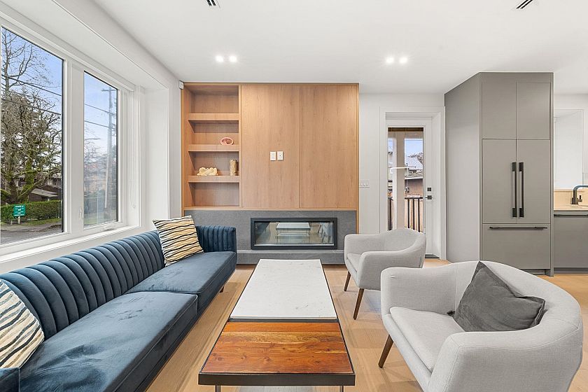 Welcome home to your exclusive boutique Renfrew Duplex. Discover this exceptionally elegant & modern home crafted w/ meticulous attention to detail. This home features 4 beds + 4 baths with a legal suite as a mortgage helper! Enjoy an open concept layout w/ custom millwork throughout, designer powder bathroom, abundant natural light from large window, a gourmet kitchen w/ integrated Fisher & Paykel appliances & floor to ceiling custom cabinetry. A/C, radiant heat, heat pump, security system, cameras add modern comfort. The 1 bedroom legal suite offers flexibility for guests or rental income. Gas BBQ on back deck, fully enclosed spacious yard offer ample room for entertaining. Garage is Level 2 EV Ready. Truly special! Come discover Vancouver's finest!