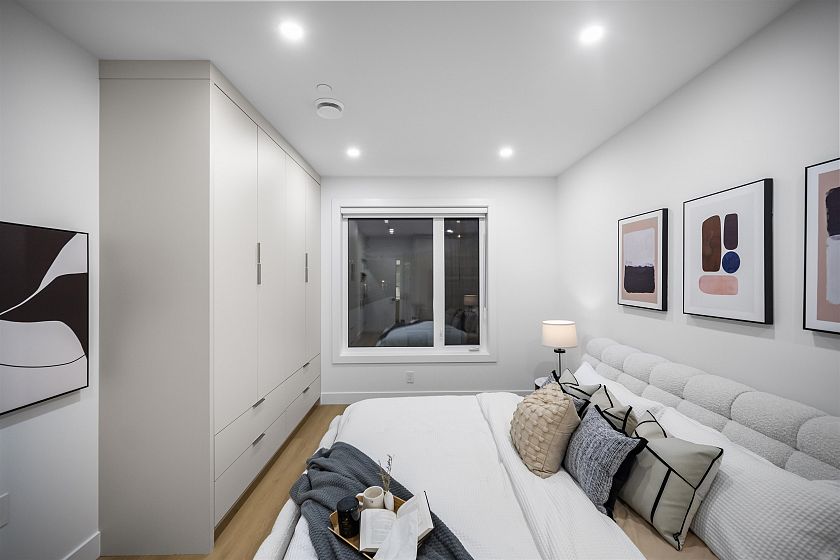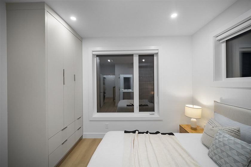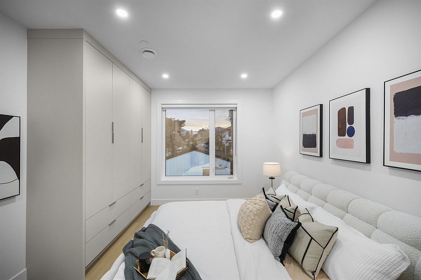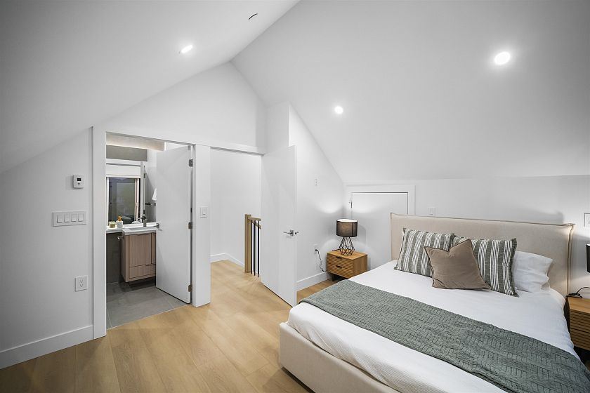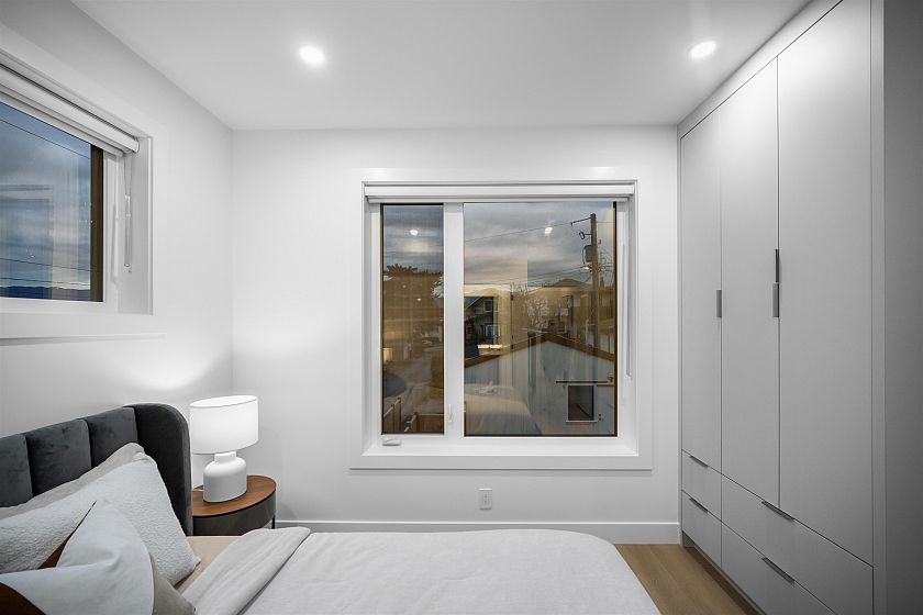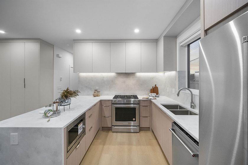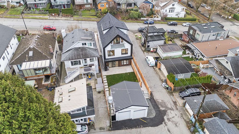 Brand new, sleek and stylish BACK duplex perched on a corner lot in highly sought-after Hastings Sunrise. Thoughtfully designed with a flowing floor plan, this home offers an open main level with designer finishes, high ceilings, and abundant natural light. The modern kitchen features custom cabinetry, premium appliances, and functional workspace - perfect for everyday living and entertaining. Upstairs offers well-appointed bedrooms including a beautiful primary suite with spectacular city + mountain views. Quality craftsmanship, timeless material choices, and private outdoor spaces complete this impressive build. Located in one of East Vancouver's favourite pockets - walkable, family-friendly, close to shops, parks, schools, transit, breweries, and easy access to DT, North Shore, and HWY
