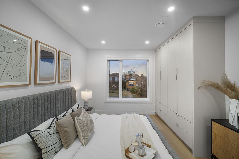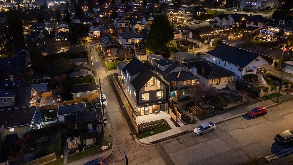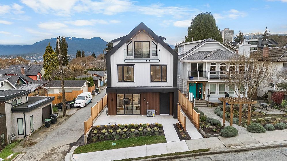 Brand new, sleek and stylish FRONT duplex perched on a corner lot in highly sought-after Hastings Sunrise. Thoughtfully designed with a flowing floor plan, this home offers an open main level with designer finishes, high ceilings, and abundant natural light. The modern kitchen features custom cabinetry, premium appliances, and functional workspace - perfect for everyday living and entertaining. Upstairs offers well-appointed bedrooms including a beautiful primary suite with spectacular city + mountain views. Quality craftsmanship, timeless material choices, and private outdoor spaces complete this impressive build. Located in one of East Vancouver's favourite pockets - walkable, family-friendly, close to shops, parks, schools, transit, breweries, and easy access to DT, North Shore, and HWY