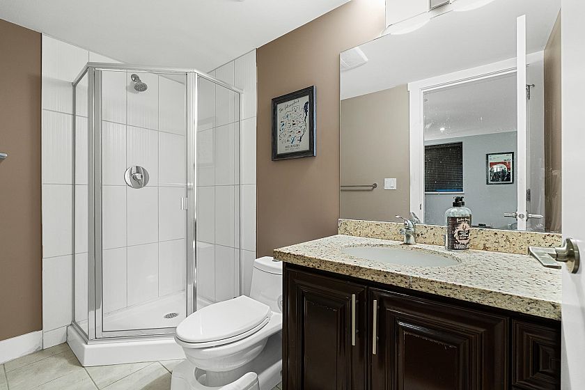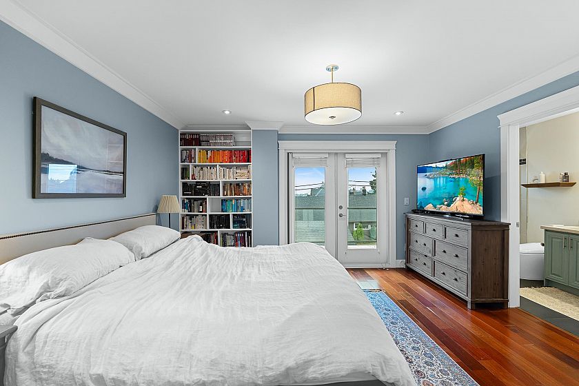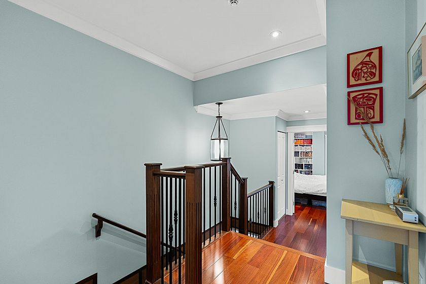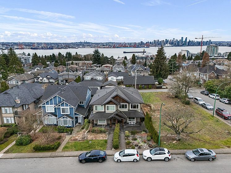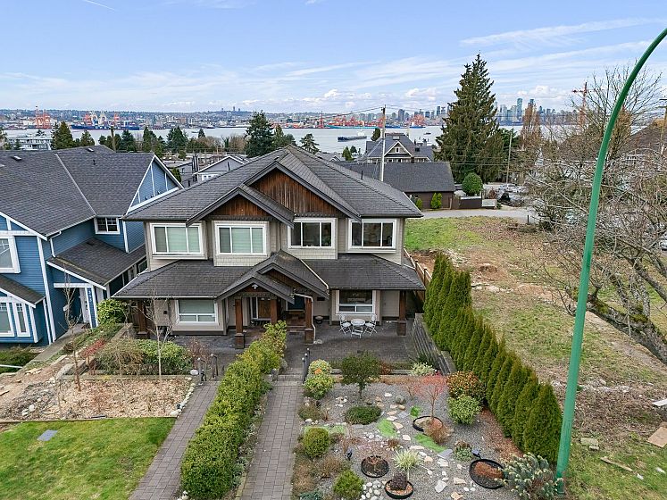 Welcome to this stunning family home in popular Lower Lonsdale. Offering over 2500 sq ft & 5 bedrooms it is perfect for multigenerational living. Upstairs you'll find 4 spacious bedrooms including a generous principal suite with a private balcony, city views, 4 pc ensuite & walk in closet. The 5th bedroom downstairs makes an ideal guest suite, in-law retreat or B&B business. The main floor boasts a spacious living & dining area with cozy gas fireplace. Pass through to the open plan kitchen/family room where a chef's kitchen features a large island, stone counter tops & stainless appliances. The family room lets out to a lovely & private back garden that is fully fenced. Additional features include A/C, a 2 car garage, large laundry room & huge rec room. Don't miss out on this special home.