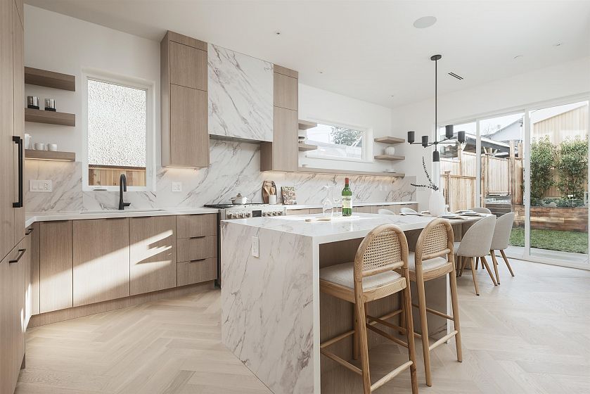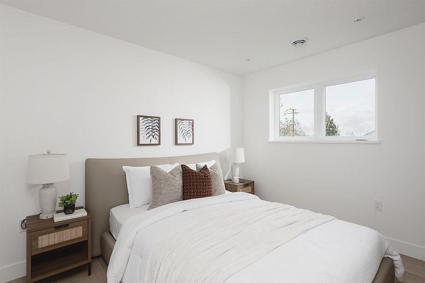 An exceptional duplex by Mirani Homes, community-minded builders known for outstanding quality. Steps to Commercial Drive, this luxurious south-facing back unit offers ALL 3 BEDROOMS ON THE 2ND FLOOR, 2.5 baths & an open-concept layout perfect for hosting. Enjoy herringbone floors, abundant natural light & inspired craftsmanship. The primary retreat ftrs a walk-in closet & a spa-inspired ensuite with double sinks. PLUS A BONUS LOFT area on the TOP FLOOR. Custom-tiled washrooms elevate every space, while the chef’s kitchen boasts Fulgor Milano appliances, premium counters, custom cabinetry & a lime-wash powder room. Highlights: radiant heat, heat pump A/C, fireplace, outdoor gas fireplace, crawl space, epoxy-finished garage & seamless outdoor flow to the sunny yard.