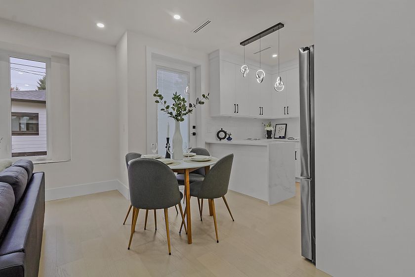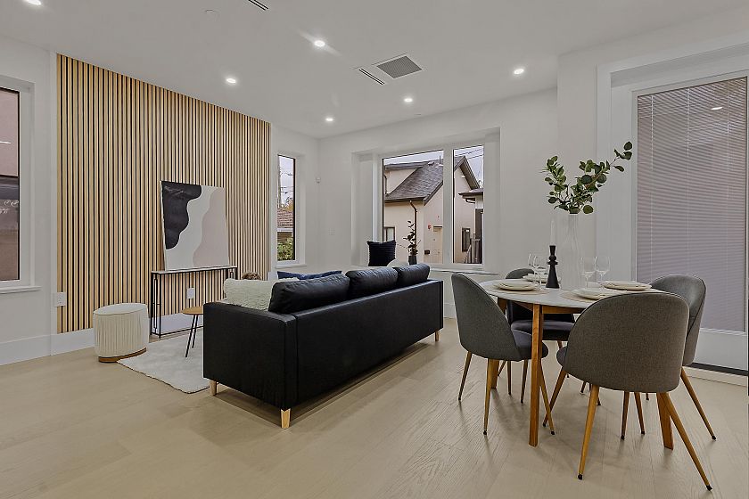Experience luxury living in this brand-new duplex located in the heart of South Vancouver, just steps from Fraser Street’s shops, restaurants, transit, and top-rated schools. Designed with exceptional craftsmanship and attention to detail, this home features high-end finishes and premium appliances throughout. The main living area offers a bright and open floor plan, perfect for modern family living and entertaining. Upstairs boasts three spacious bedrooms, including a serene primary suite with a beautifully appointed ensuite. The lower level includes a self-contained one-bedroom suite, ideal as a mortgage helper or in-law accommodation. Conveniently located and thoughtfully designed, this home combines comfort, style, and functionality in one of Vancouver’s most desirable neighbourhoods.