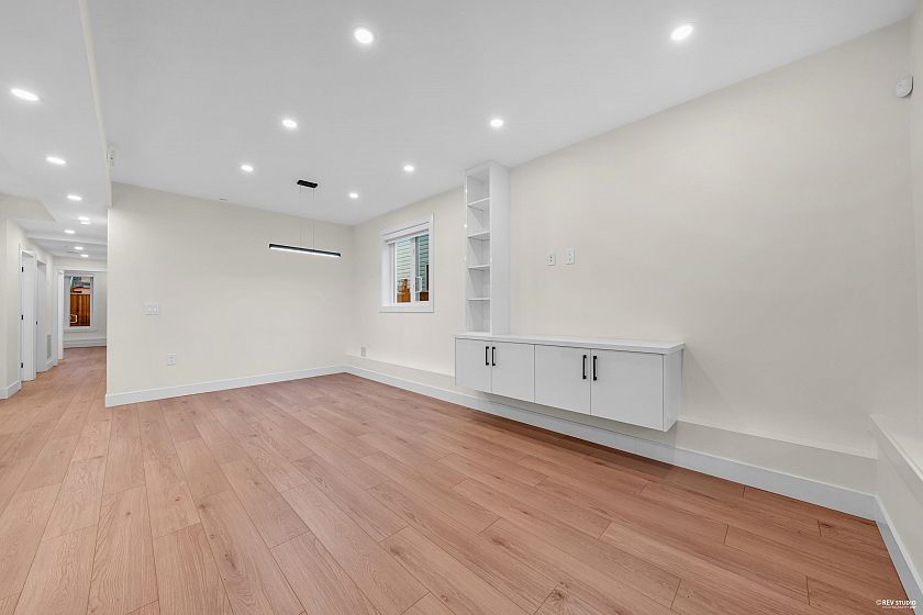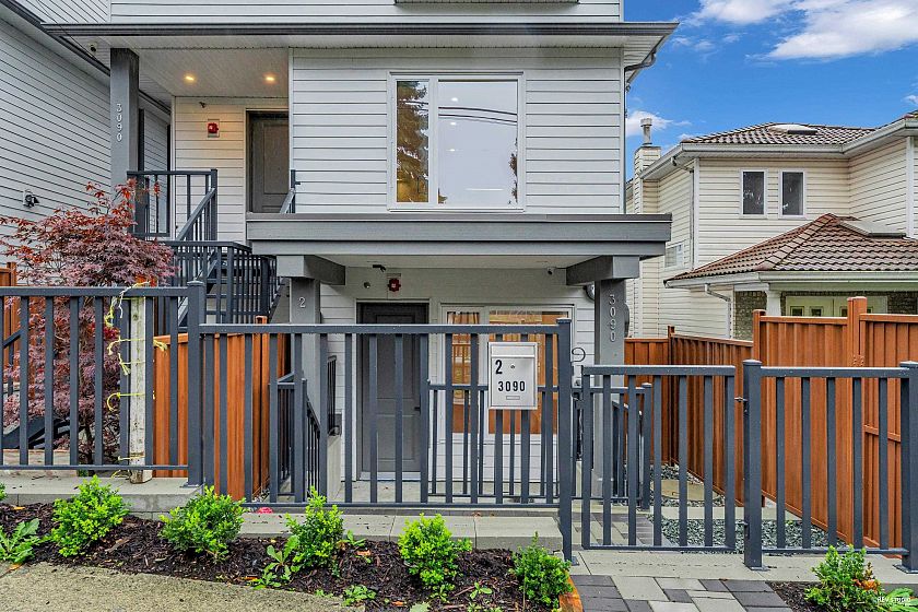 BEST PRICE brand new triplex in Vancouver with NO STRATA FEE! Modern garden-level home in a brand-new triplex in Joyce-Collingwood. This 3-bedroom, 2-bath home features a stylish living room with custom TV cabinet, sleek kitchen with S/S appliances and large island, plus A/C, HRV, heat pump, security system, EV-ready parking, and fenced front yard. The primary bedroom includes a large walk-in closet. Spacious living/dining area with no wasted space. Includes ensuite laundry, ample storage, and 2/5/10 warranty. Convenient location near schools, parks, and SkyTrain stations. Built by reputable builder Vaneco Luxury Homes. Open House Mar. 7th from 1 to 2:30.