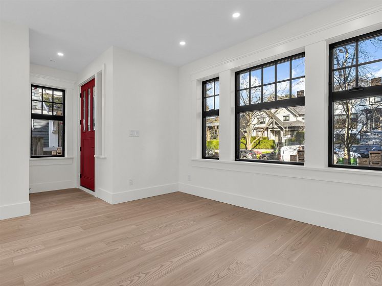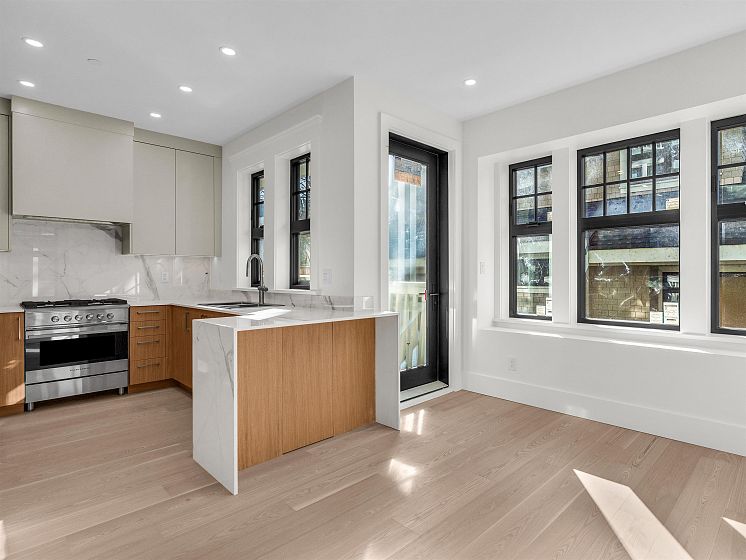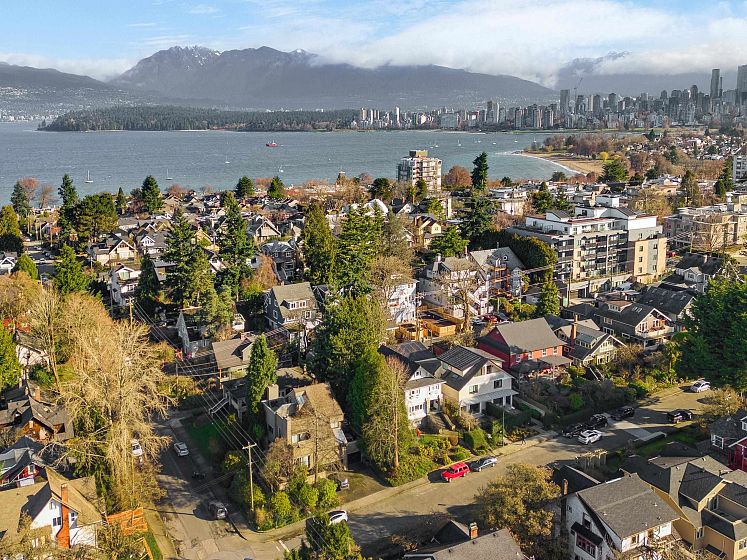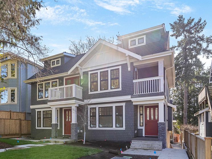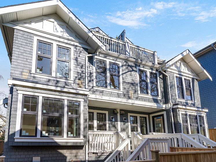 PRIME LOCATION NORTH OF 4TH! This exceptional SIDE X SIDE 1641 sf. 1/2 duplex has been carefully designed with quality craftsmanship materials & elegance. 4 bed, 3.5 bath & 3 decks, its all here! Oversized windows for extra light and wide ash wood floors. Modern kitchen features flat-panel cabinetry, porcelain counters, Fisher & Paykel appliances, radiant in floor heating and Terrazzo bathroom tiles. Primary bedroom with cathedral ceilings, steps out to a north private balcony. Top bed/rec room enjoys a sunny balcony. A/C, heated 616 sf crawl space, wired for EV and solar panels. Private 1 car garage. You will love living here nestled amongst large character homes on a quiet tree lined street. Walk to Kits Beach, tennis courts & pool, Private Clubs, trendy 4th Ave shops. Open Sunday 2-4