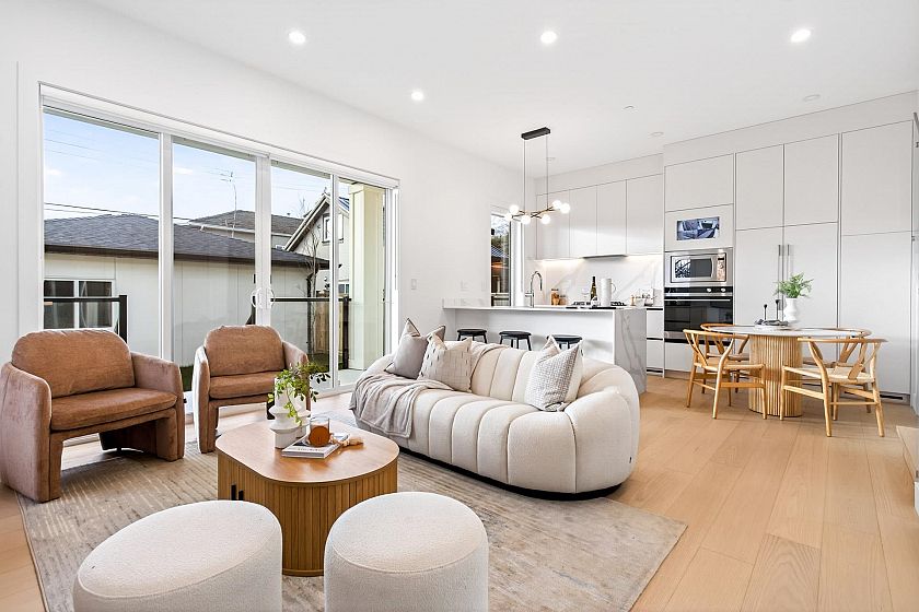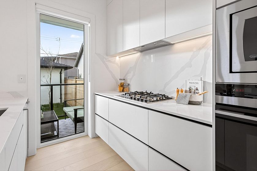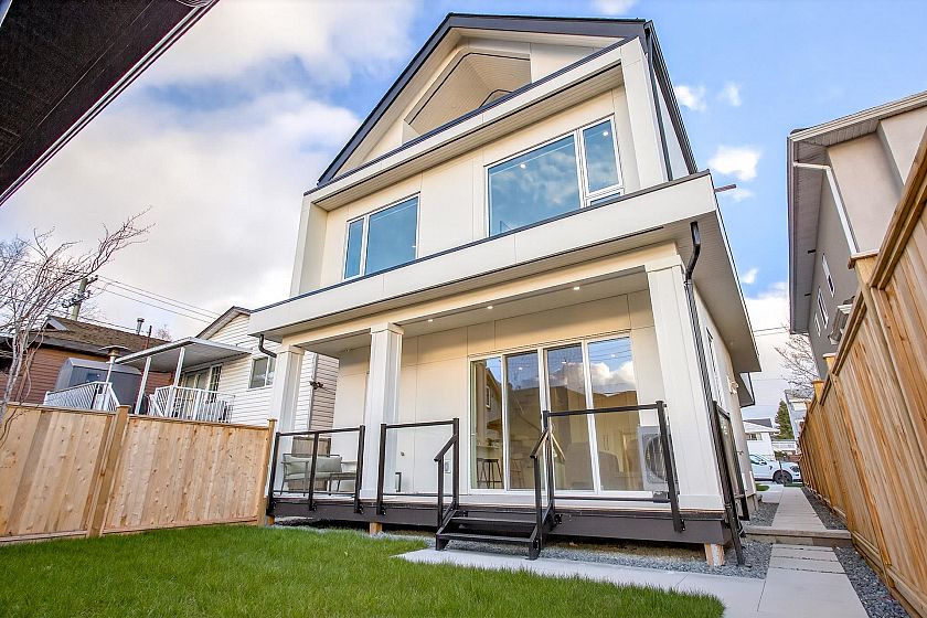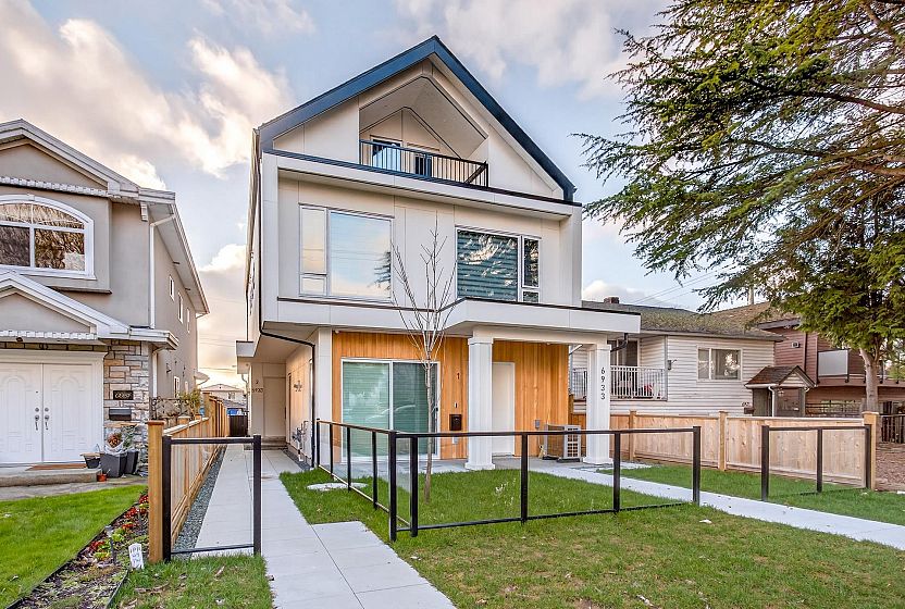 Brand new back-unit duplex buiilt by Vantac in Main St area of Vancouver! This property offers 1469 sqft living space with 3 bedroom, 1 office, 3.5-bath. Designed with comfort and functionality in mind, the open-concept layout includes dedicated living, dining, and kitchen spaces. High-end finishes throughout include integrated kitchen appliances, engineered hardwood flooring, AC.580 sq ft backyard perfect for kids and outdoor gatherings. Upstairs features 2 bedrooms plus a office, including a comfortable primary suite, plus a top-floor bedroom with its own balcony and wash room. Single garage, porch, and plenty of storage. Ideally located near John Henderson Elementary, John Oliver Secondary, Sunset Community Centre and Park, and Marine Station transit. Must see!