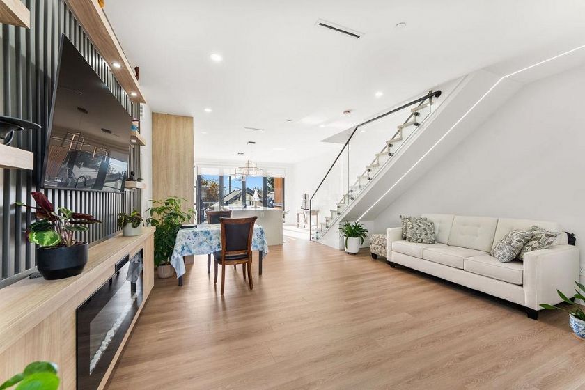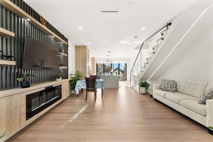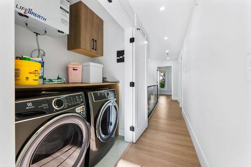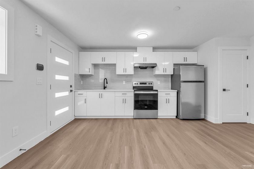 Stunning new Half Duplex with a South facing backyard Boasting modern design and high end finishing. This half duplex features 3 bedrooms upstairs and 2.5 bathrooms with an additional one bedroom one bathroom legal suite. 1842 sqft living area, plus 152 sqft patio, huge 269 sqft crawl space. Luxury finishes include wood accent panel walls, waterfall kitchen island, Fisher Paykel appliances, glass railings, control 4 automation for lights, arch windows, bi-folding doors that lead to a private patio space. This includes a fenced backyard to enjoy sunsets & outdoor living with a beautiful view. Comes with a single car garage and additional open space for parking. 2-5-10 year Warranty. QUICK COMPLETION POSSIBLE. NO GST!!