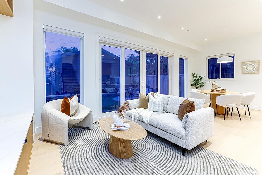 Discover modern sophistication in Mount Pleasant! This brand-new smart contemporary 1/2 duplex offers a bright, open layout with a chef-inspired kitchen—Fisher & Paykel appliances, gas range, quartz counters, oversized island, and a walk-in pantry. The spacious living and dining areas extend seamlessly outdoors through large glass patio doors. Upstairs features 3 bedrooms, each with its own ensuite, plus a walk-out balcony. Enhanced with Control4 automation, motorized blinds, central A/C, HRV, heat pump, built-in vacuum, and a security system, all within the highly desirable Dickens catchment.
