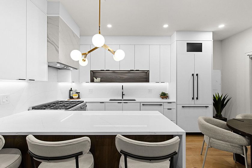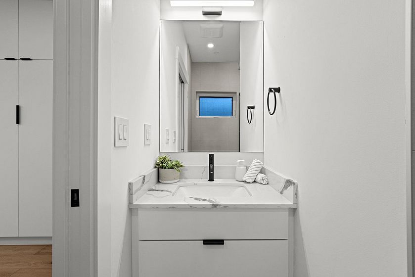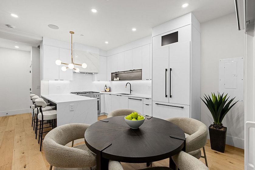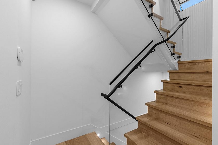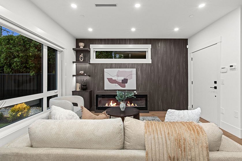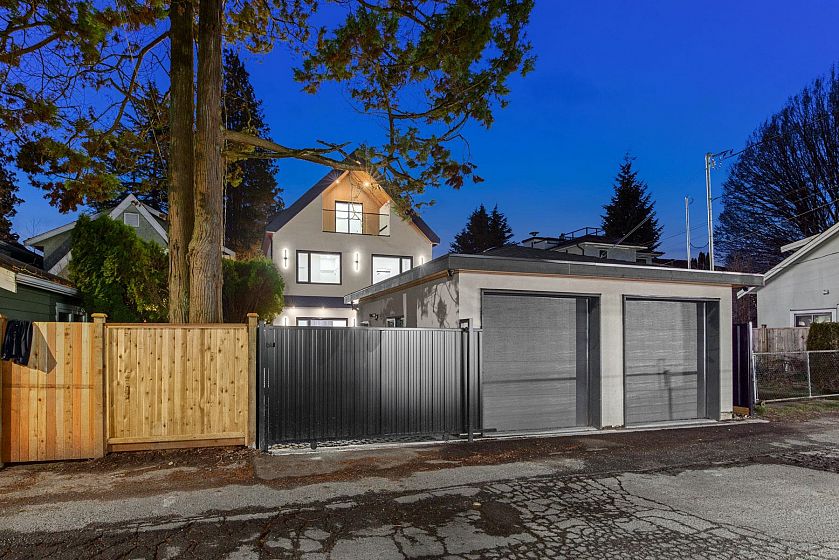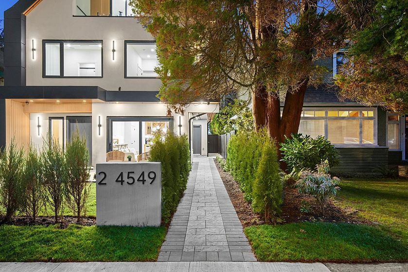 Experience luxury living in this brand-new back 1/2 duplex located in prestigious Point Grey. Meticulously crafted with superior materials, this home features an open plan with oak floors, high ceilings, and designer lighting. The gourmet kitchen boasts Miele appliances, custom cabinetry, wine fridge and Quartz countertops. Upstairs, vaulted ceilings, spa-like ensuites, and custom millwork elevate the spacious bedrooms, with the top-floor retreat offering a private balcony overlooking your private South-facing backyard. Enjoy seamless indoor-outdoor living with a landscaped patio, gas hookup outside, plus A/C, radiant heating, built-in speaker system & EV ready single-car garage plus parking pad, all just minutes from the beach & UBC & shops. Open house Sat (3/14) & Sun (3/15) 2-4 pm.