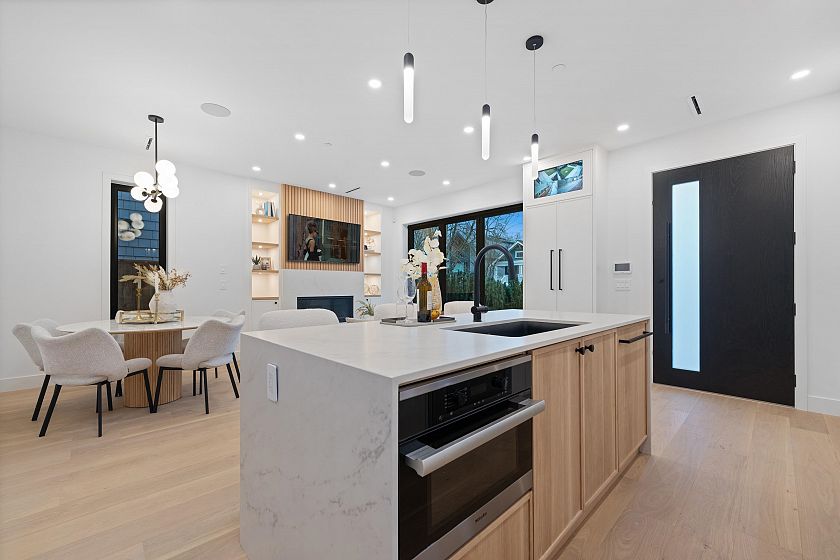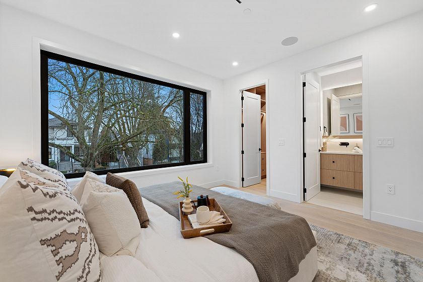 Built by renowned Westside builder Mann Bros Construction, this brand-new front 1/2 duplex in the heart of Kitsilano is a masterpiece of design and craftsmanship, with no detail spared. This 3 bed, 4 bath home blends timeless style with modern comfort. The main floor boasts an expansive, open-concept layout with a sleek Miele kitchen, Dekton counters, custom cabinetry, and a 7-ft island. High ceilings, triple-glazed windows, radiant in-floor heat, and eclipse doors create seamless indoor-outdoor living. Features include A/C, built-in speakers, EV-ready garage, and smart home features. Spa-inspired bathrooms feature Riobel and Kohler fixtures, frameless glass showers, and smart toilets. Enjoy mountain views in one of Vancouver’s most walkable and family-friendly neighbourhoods.