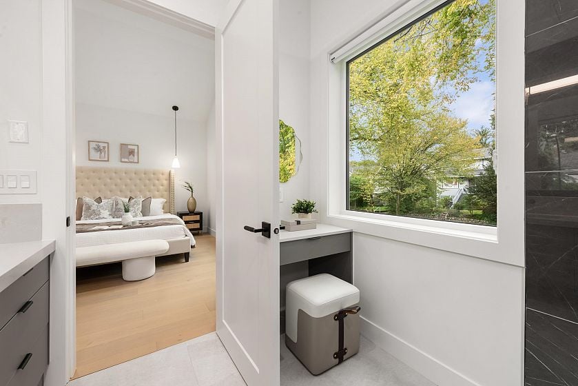 Luxury living in Kerrisdale-Discover this 2-storey front duplex by renowned builder Astrawest, trusted for 25+ years of luxury homebuilding. Spanning 1,524 sq ft, this home sits on a tranquil tree-lined street in prestigious Kerrisdale. Designed for modern living, it features air conditioning, built-in speakers, and a gourmet kitchen with Miele appliances, Fisher & Paykel fridge, and wine cooler. Offering 3 bedrooms & 3.5 baths, each with its own ensuite, plus a private patio, this residence blends style, comfort, and functionality. Just minutes from St. George’s, Crofton House, boutique shops, and transit—this is sophisticated Westside living.