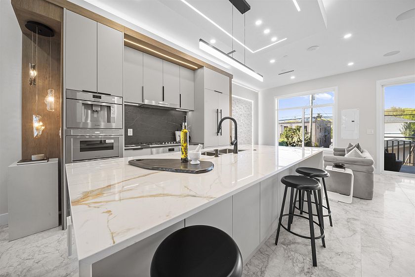 BRAND NEW NEVER LIVED IN DUPLEX built late 2024 in prime Kitsilano offering 2,327 sq ft over three levels. Bright open main floor with soaring ceilings and a gourmet kitchen featuring premium appliances and a large island, opening to a private fenced yard and covered patio. Upstairs has 3 spacious bedrooms including a primary retreat with balcony and spa like ensuite. Includes a legal 2 bed, 1 bath suite a major income producer and excellent mortgage helper. Built with high-end luxury & modern standards, the home is very energy efficient for lower utility costs and year round comfort. Also features A/C, 2 parking, garage & gated parking, and full security system. Steps to top schools, cafés, parks, and beaches in one of Kitsilano’s most desirable locations, right infront of Connaught Park!