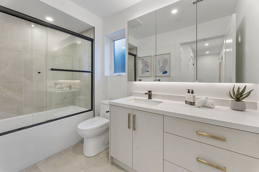 Nestled in the highly sought-after Kerrisdale neighborhood, this meticulously crafted duplex offers an exceptional living experience across 1,578 sqft. Designed with modern living in mind, featuring an open layout that beautifully merges the living, dining, and kitchen areas into a cohesive & inviting space, accentuated by high-end finishes. Enjoy year-round comfort with radiant in-floor heating. Boasting three elegantly appointed bedrooms, each with private en-suites, this home combines comfort with sophistication. Its convenient location further enhances its appeal, placing you steps from West Blvd's vibrant array of shops, restaurants, & top school catchment including Magee Secondary and Maple Grove Elementary, making it a perfect blend of urban convenience & contemporary living.