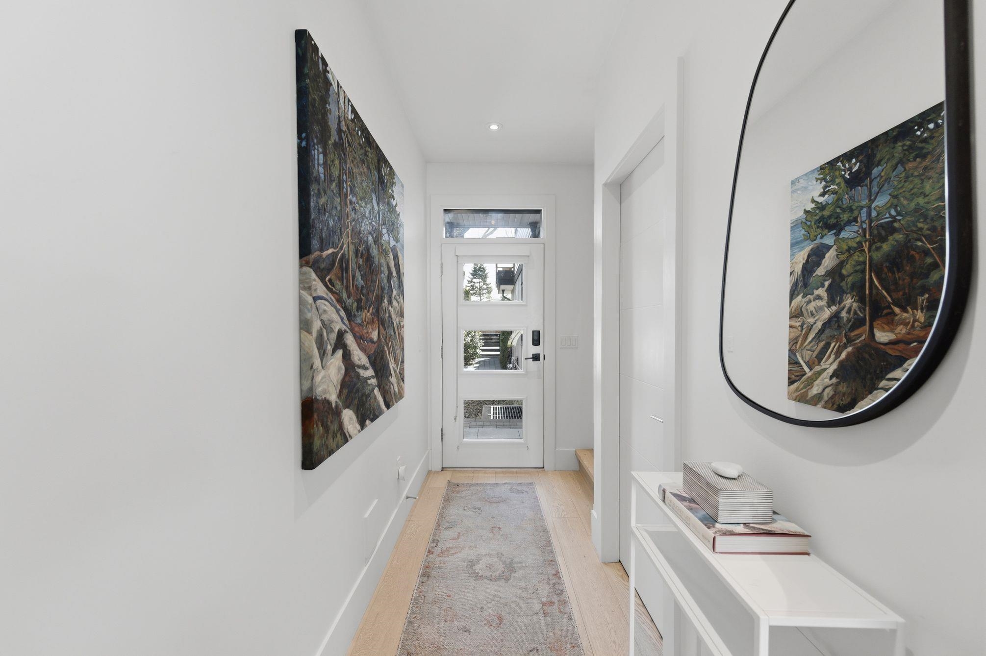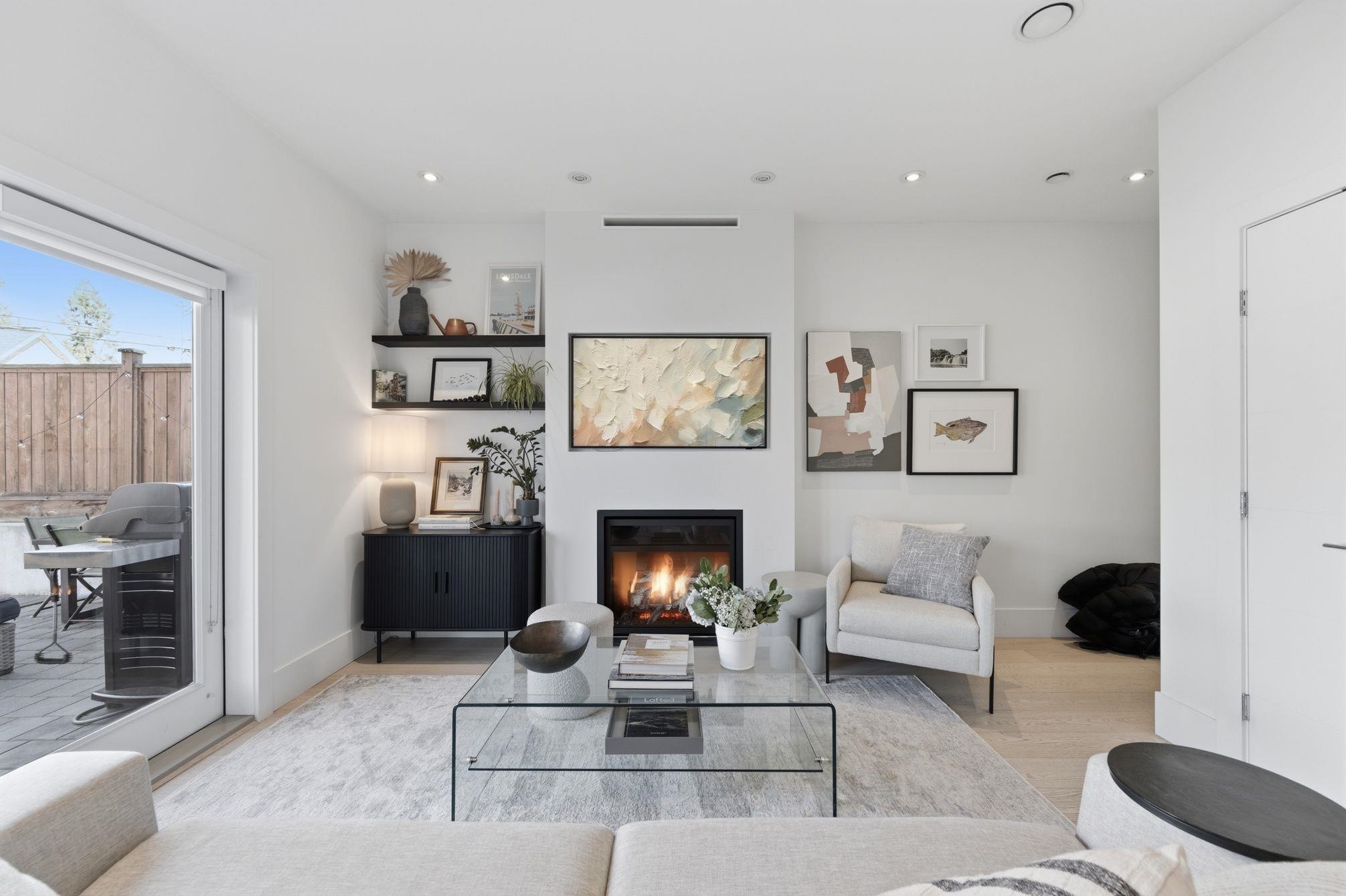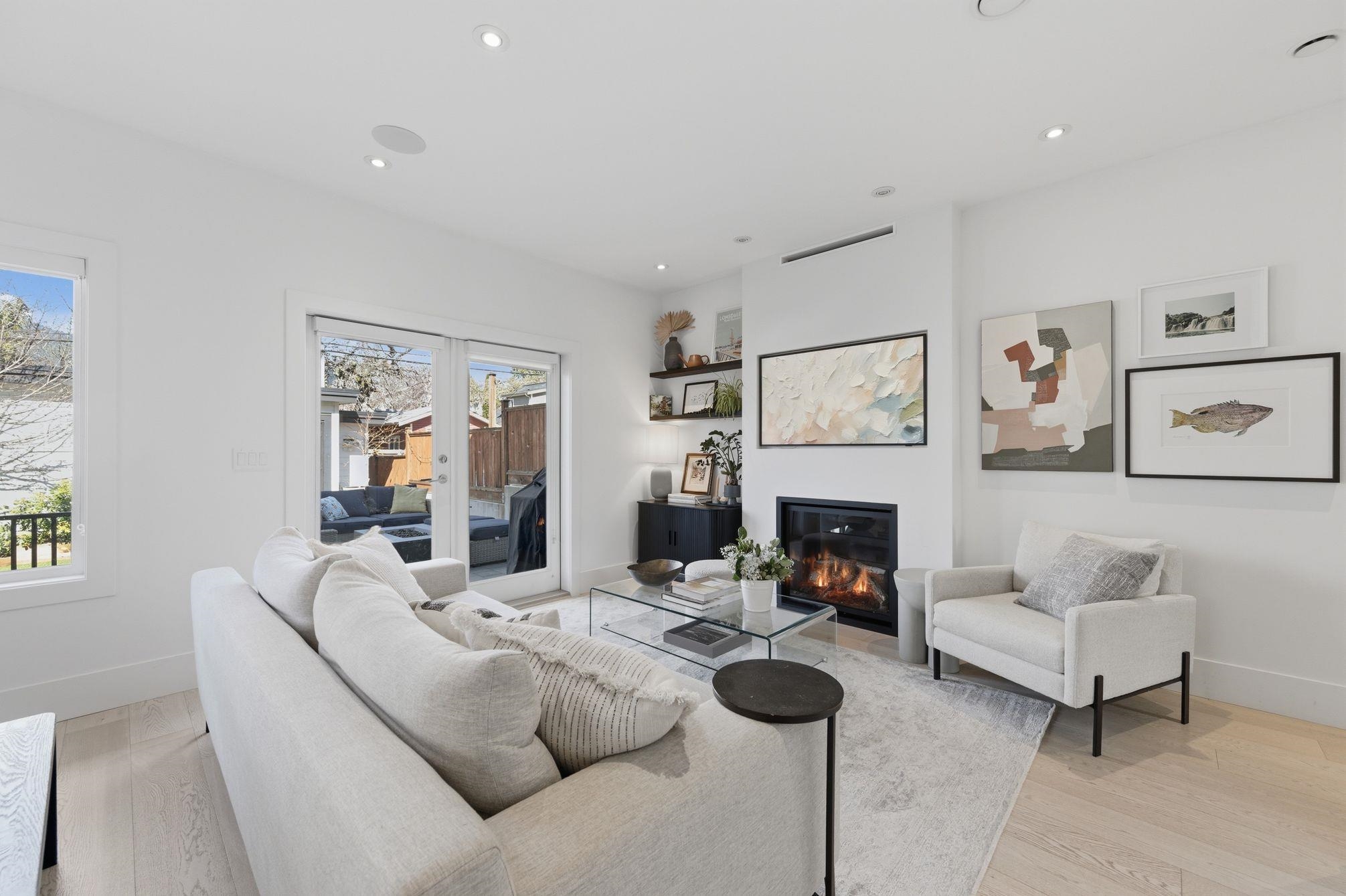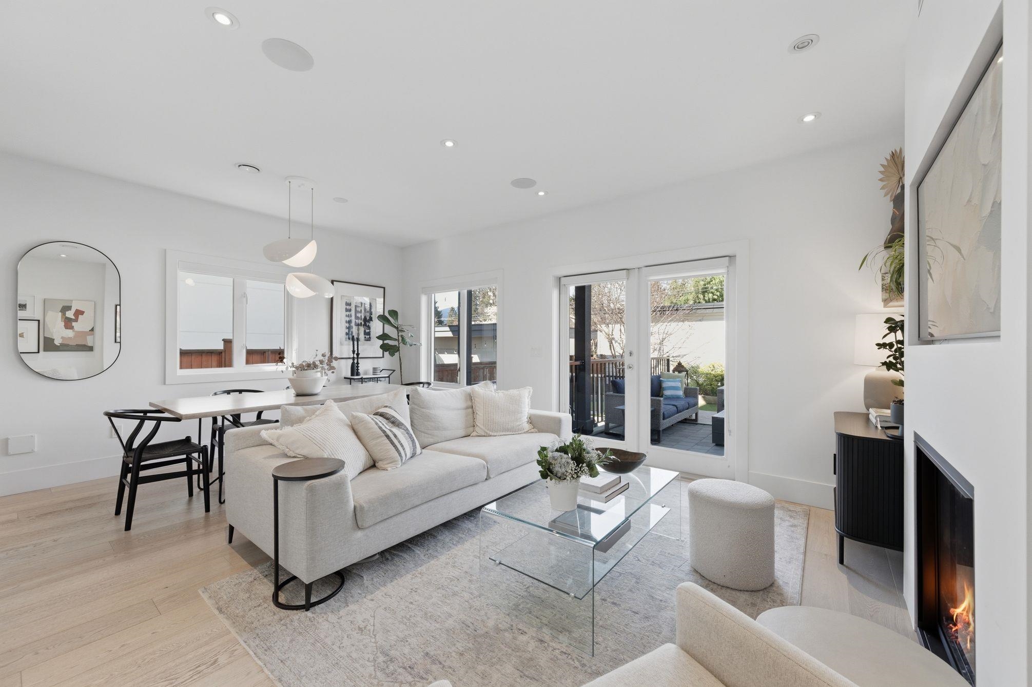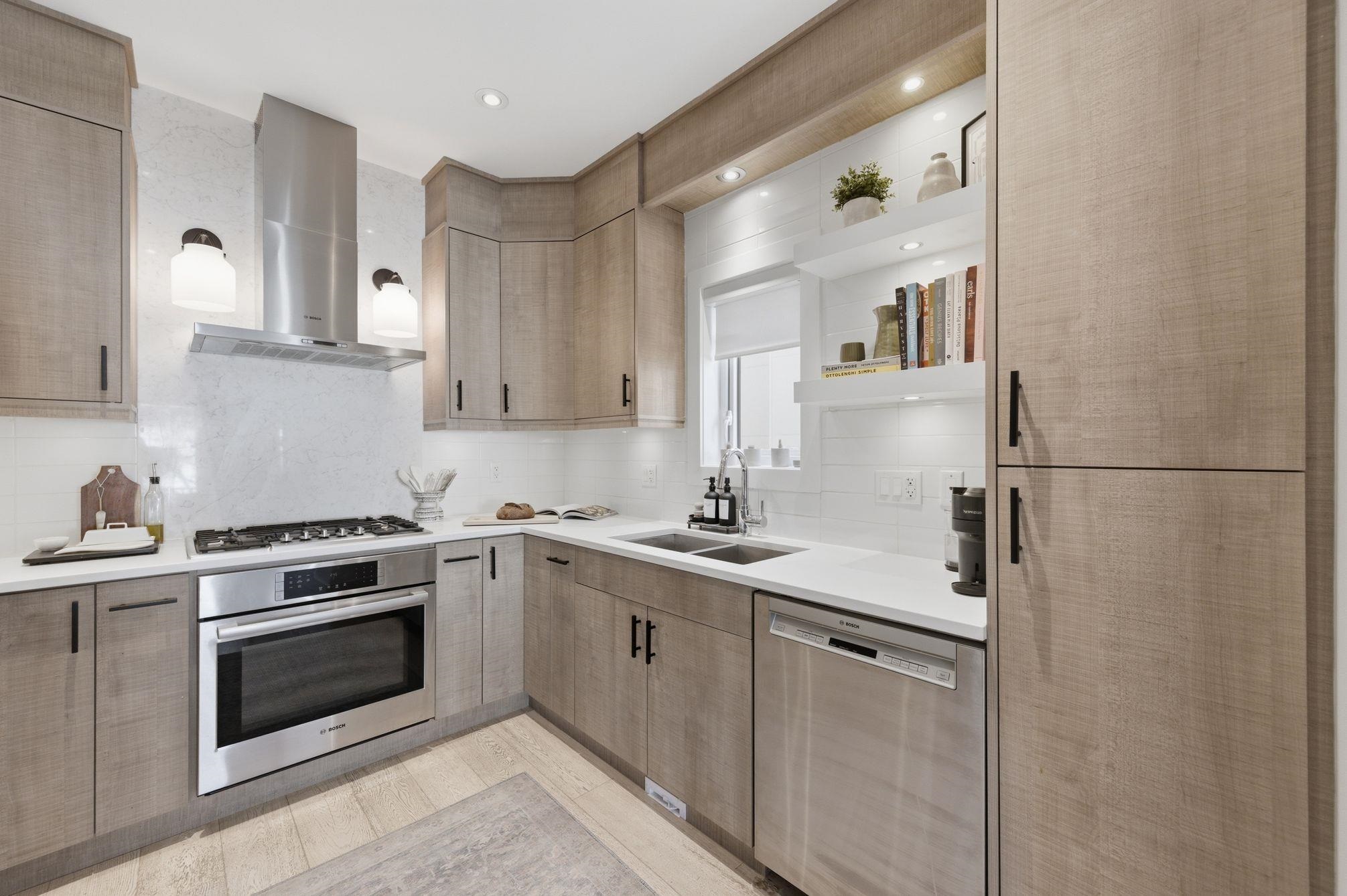 Simply the best PRIVATE 3 Bed & Den 4 Bath duplex with warranty-quality you don’t want to miss. Quiet & Private entry, be welcomed by 9ft ceilings and oak flooring flow into the bright living room, warmed by the gas fireplace. Entertainer’s kitchen with quartz counters, flawless cabinetry and Bosch appliances.Expansive living & dining opens to a fabulous patio and lovely green space, for entertaining of all kinds. Upstairs features 3 spacious bedrooms and 2 full baths. Serene primary suite w/walk-in closet, ensuite, & patio w/mountain VIEWS. Lower level has SEPARATE entrance - ideal for a nanny suite/home theatre complete w/KITCHENETTE & expansive storage. Best of both with in-floor radiant heat throughout and AIR CONDITIONING. Full GARAGE + locker. FIRST SHOWING 10a-12 Wed. OPEN SUN 2-4p