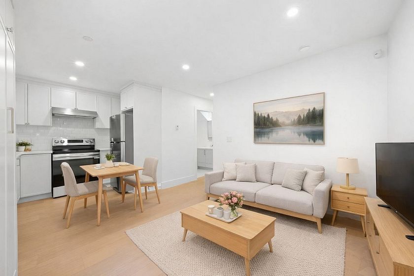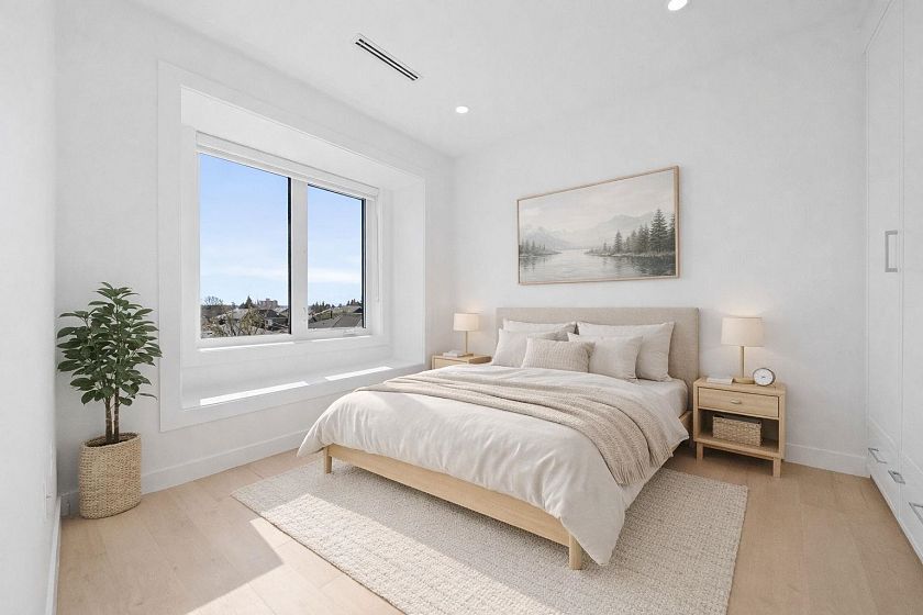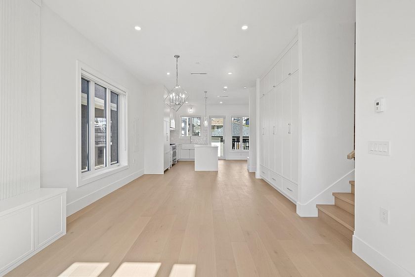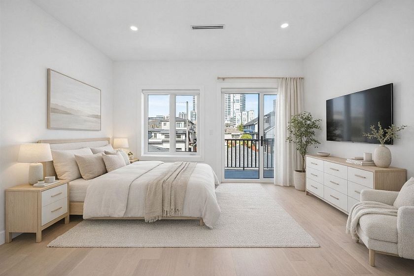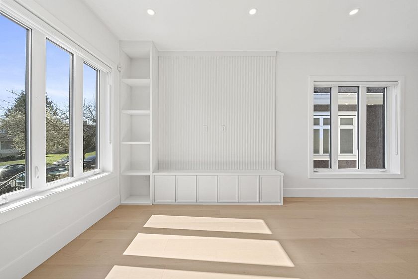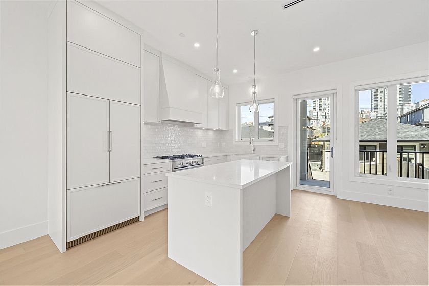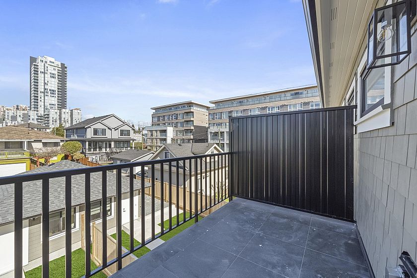 Welcome HOME to this QUALITY built craftsman-style SIDE x SIDE duplex 46ft wide lot, amazing CAMBIE location, just an 8min walk from Marine Gateway skytrain! This BRIGHT, SUNNY, efficient 4bd 3.5bth home incl DIRECT interior access to 1bd 1bth suite w/separate entrance – you can AIRBNB THIS SUITE! Feel the LUXURY the moment you enter this home w/ EXQUISITE millwork, engineered hardwood floors, radiant heat, A/C, 10ft HIGH CEILINGS & DESIGNER powder room! You will LOVE spending time w/family in the CHEFS KITCHEN W/ HUGE island, Fisher Paykel Appliances, GAS stove, gorgeous textured backsplash, & BUILT-IN BREAKFAST NOOK overlooking the backyard! Upstairs is the ELEGANTLY ensuited KING-SIZED Primary bdrm w/deck, QUEEN-SIZED 2nd bdrm, the perfect 3rd bdrm & beautifully appointed full bath!