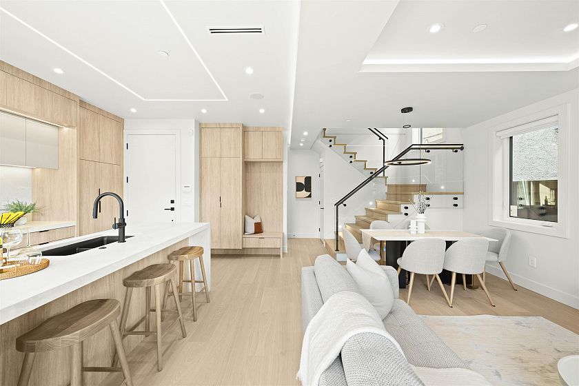 Discover modern elegance in this brand new 1/2 duplex by Astrawest, ideally located on a quiet, tree-lined street in the heart of Dunbar. Offering over 1,600 sq.ft. with 3 bedrooms and 3.5 bathrooms, this home blends timeless design with high-end finishes including Longboard metal siding, Euroline windows, Miele appliances, Brizo & Kohler fixtures, engineered hardwood floors, Google Nest smart home, Bluetooth speakers, A/C & heat pump, and landscape lighting. Steps from Lord Kitchener Elementary, a short walk to Lord Byng Secondary, and minutes to St. George’s, Crofton House, and the shops and cafes of Dunbar Village.
