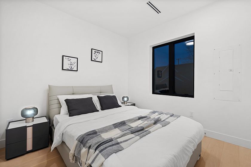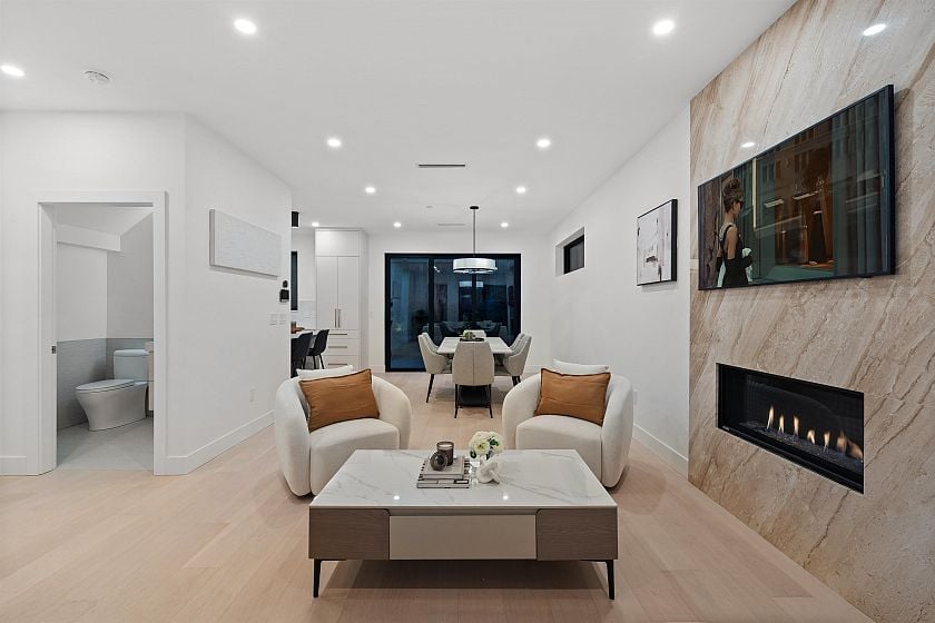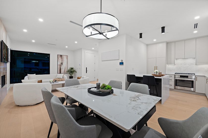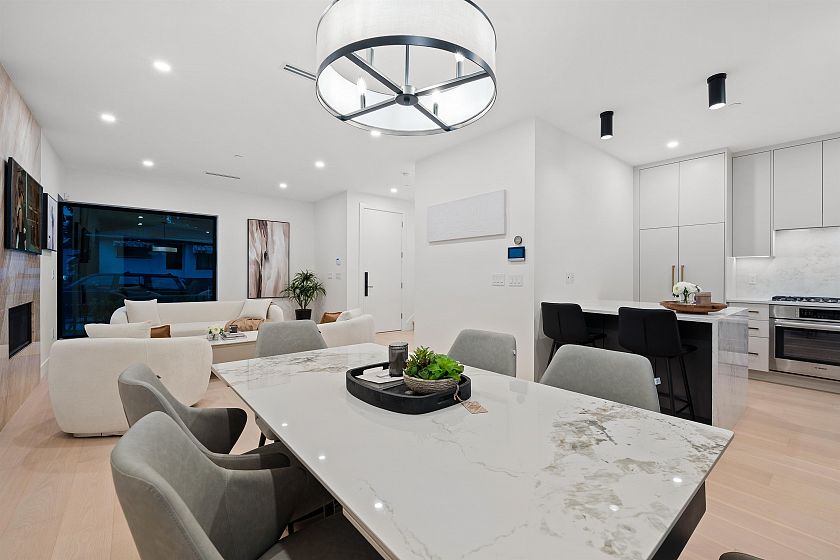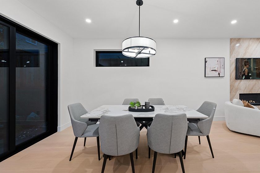 Striking Scandinavian-inspired architecture meets modern West Coast living at 3670 Fleming—an exceptional offering in Cedar Cottage. This fully detached, stratified home features 3 well-proportioned bedrooms, 3 bathrooms, and a private patio and garden for seamless indoor-outdoor living. The open-concept main level flows effortlessly from living and dining to a well-appointed kitchen and large multi slide doors out to your private oasis. Upstairs offers an ideal family layout with 3 bedrooms, including a spacious primary suite with walk-in closet and ensuite. Interior highlights include oak floors with radiant heat , custom millwork, integrated Bosch appliances, quartz waterfall countertops, and a natural marble fireplace. Open House: Saturday, April 4, from 2 - 4 PM.