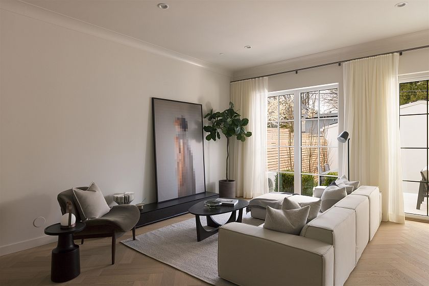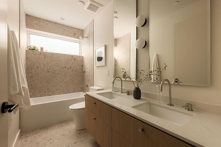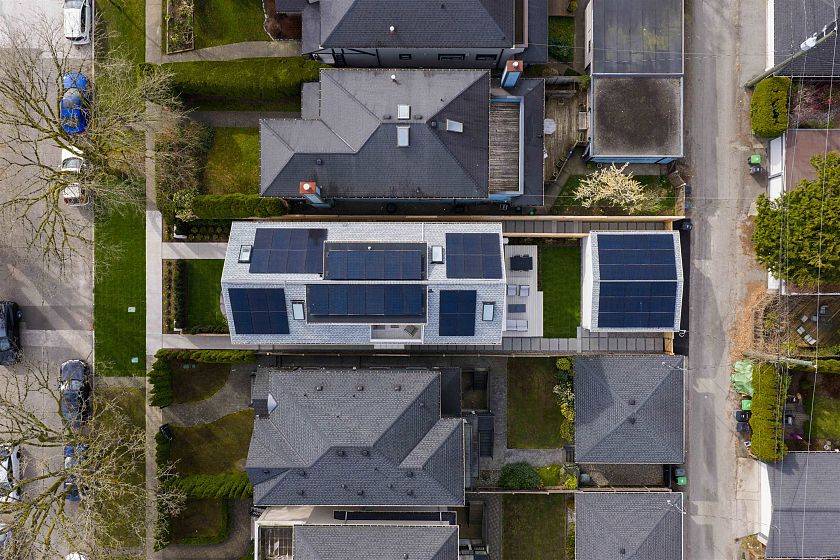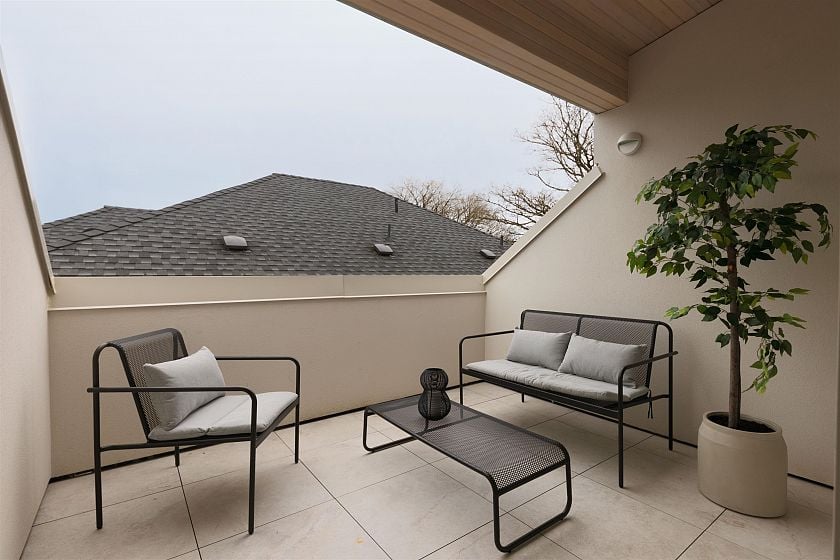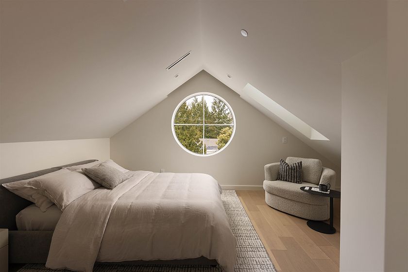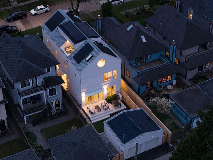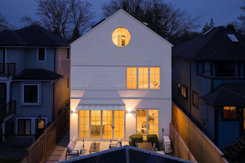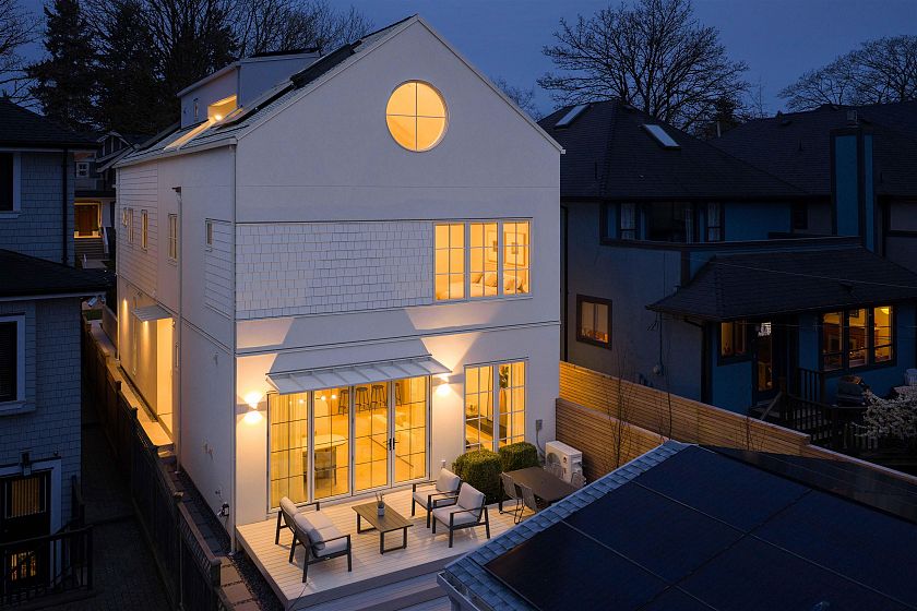This net zero 1,852 sqft back four bedroom 1/2 duplex by Noble Architecture & Shift Interiors delivers efficient design and elevated comfort. The open main level features an oversized island and seamless indoor-outdoor flow to a private landscaped backyard with multi-tiered patio. Three bedrooms are positioned together on the second floor, with the primary enjoying mountain and city views. The top-floor suite offers a private retreat with ensuite, walk-in closet, and elevated views plus a private deck. Built with triple-glazed windows, advanced climate control, and net-zero energy costs. Steps to Dunbar’s shops, parks, and everyday essentials.