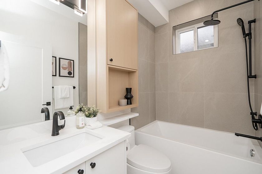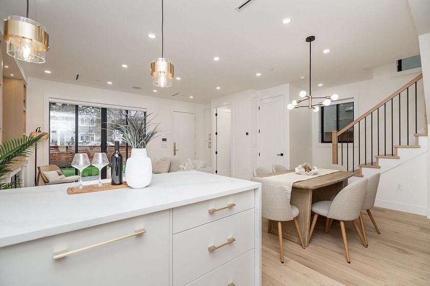 Brand new NORTH FACING front duplex in the heart of South Vancouver: a bright, beautifully designed home that checks all the boxes. Ideal for young families needing more space or empty nesters seeking stylish, low-maintenance living without compromise. This north-facing 3-bedroom, 3.5-bath home features generous storage, abundant natural light, and lovely outdoor space. Premium finishings include a high-end appliance package, A/C, wine cooler, custom wine rack, custom cabinetry, granite countertops, radiant in-floor heating, Google Nest Gen 3 thermostat, electric fireplace, built-in speakers, and a security system / tv monitor . Close to parks, shopping, transit, Queen Elizabeth Park, J.W. Sexsmith Elementary, Sir Winston Churchill Secondary French Immersion, and more.