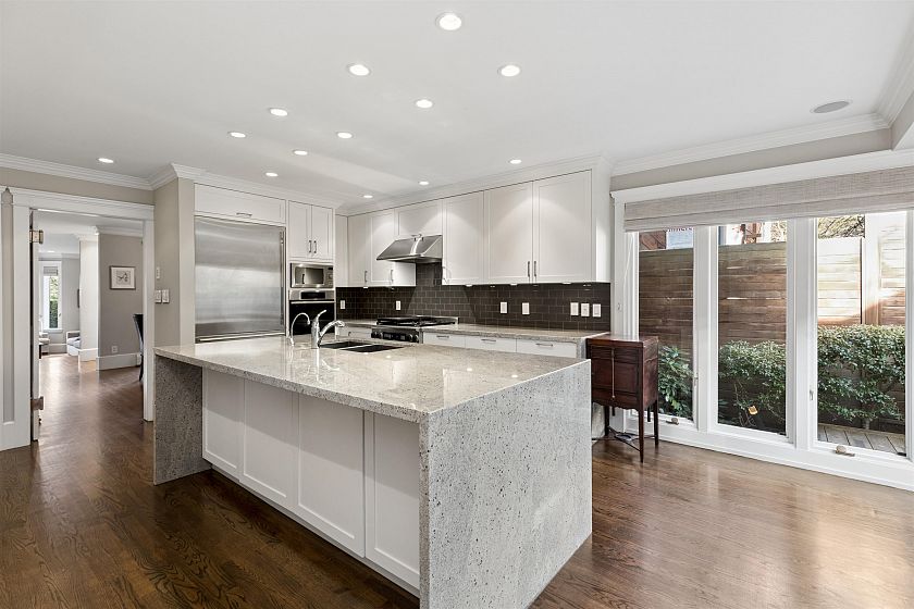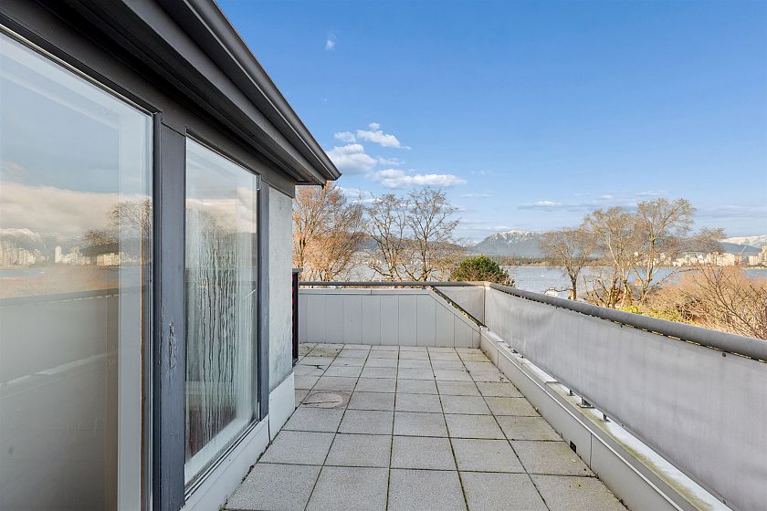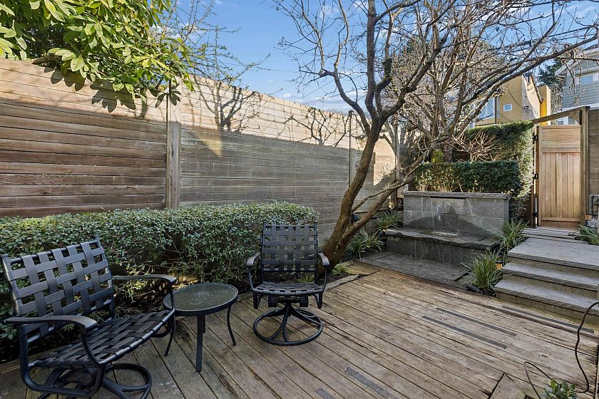 Exceptional opportunity to live on iconic Point Grey Road. Steps from the Seawall, Kits Beach, the Showboat, and the vibrant shops and cafés of West 4th. This elegant half-duplex offers over 3,500 sq. ft. across four levels of refined living. The main floor features expansive living and dining spaces and a beautifully updated kitchen with premium appliances, opening to a tranquil private garden with granite fountain. The top level boasts dramatic vaulted ceilings and an extraordinary rooftop deck with sweeping city, mountain, and water views. The 2nd/lower level very versatile! Complete with three gas fireplaces, abundant natural light, sauna, private garage, and flexible space offering four bedrooms with potential for five and four bathrooms, an exceptional Vancouver lifestyle. Oh SAT 2-4