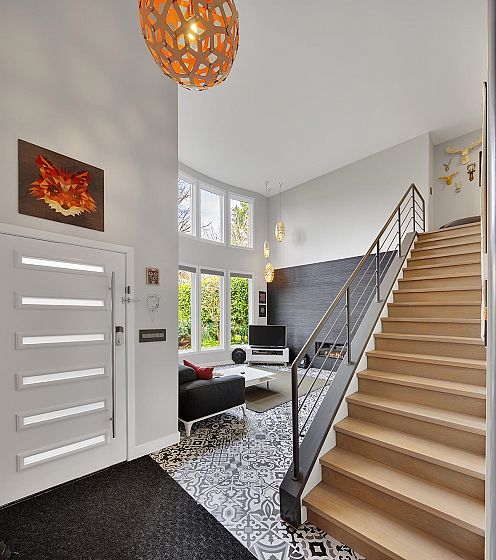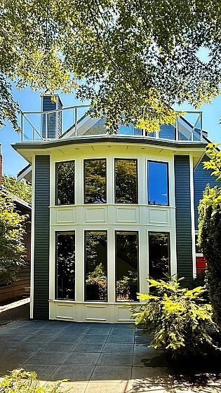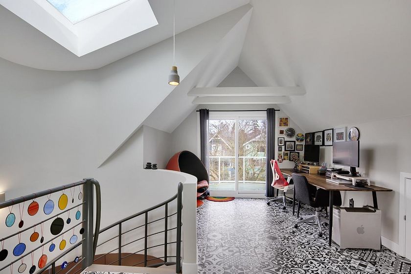 Rare and unique FRONT 1/2 Duplex in CALMED North of 4th location - a city oasis! Private front yard! Completely renovated with permits! Cedar siding, envelope, roof, windows & more also updated. Main flr has soaring 20' ceilings with floor to ceiling windows, new gas fireplace & modern open stairway. Dining room has hardwood floors & opens to a spacious full size renovated kitchen. Powder room on main flr. The 2nd level features master bedroom with a deluxe 5 pc ensuite. Up the spiral staircase to the third floor w/ 4 pc bath, currently a large open den but you can turn back to 2 bedrooms. Top floor has private north facing man view deck. Bonus: 100 SF bsmt + 600SF crawlspace storage + single car garage! Ask for extensive upgrades list. 1 blk to Jericho Beach, Pt Grey Rd, 4th Ave, and bus.