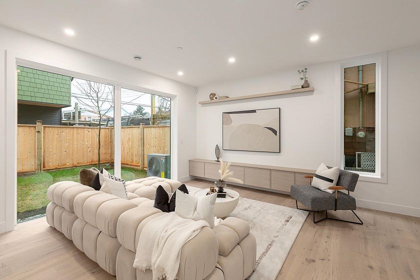 Presenting the back duplex of your dreams! This home is ideally located in the heart of Fraser/Main and seamlessly blends sophistication with practicality. This spacious and timeless floor plan extends over 2 levels and boasts an abundance of natural light with south-facing exposure. The main floor is made for those who love to entertain with an expansive area for dining, living, and a well-equipped Fisher & Paykel kitchen with quartz countertops, ample storage, and sleek fixtures. You will also find an office and powder bathroom. The top floor is comprised of 3-bedrooms, 2-bathrooms; including the ultimate primary retreat and lavish ensuite. With just under 1700 sqft, heat pump for heating and cooling, 841 SQFT crawl space, 455 SQFT patio, and a garage, this has everything you need.