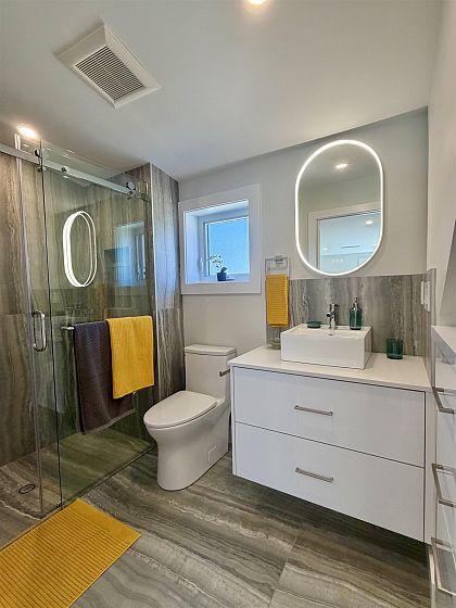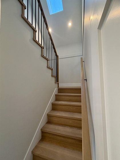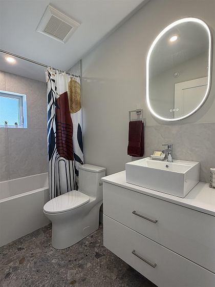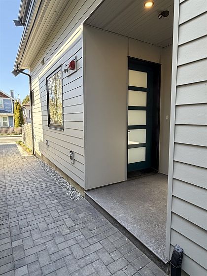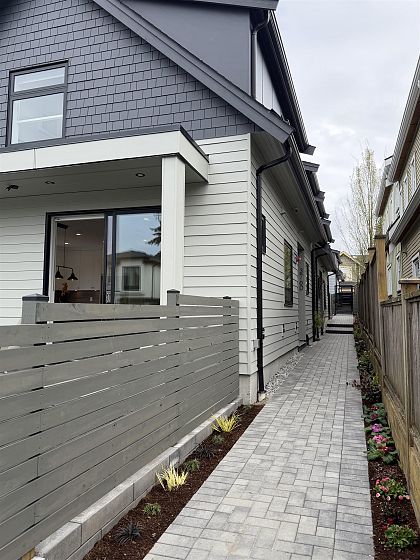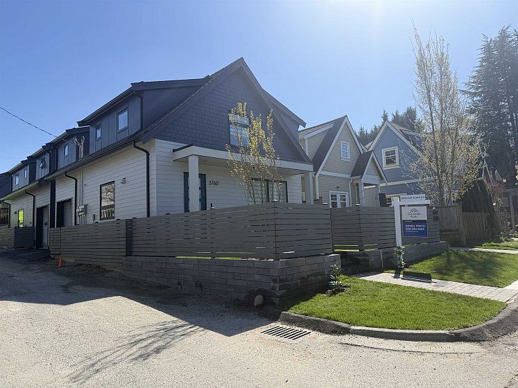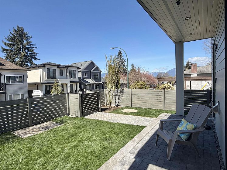Brand-new 1/2 duplex in the desirable Cedar Cottage neighbourhood by Dwell Developments. Home offers 1,448 SF over 2 levels with 4 bedrooms & 3 full baths. Main level features an open-concept layout with a large kitchen equipped with a gas range, custom cabinetry, and quartz countertops. Primary bedroom on upper-level features ensuite & private balcony. Enjoy energy-efficient 4-zone radiant in-floor heating, air conditioning, and a sunny west-facing fenced yard with NS Mountain views. Close to shopping, transit, Trout Lake CC + top-rated schools. Bonus Space: 235 SF attached extra long, EV-ready garage & storage with polished concrete radiant-heated floor. Piece of mind 2/5/10 New Home Warranty. OPEN HOUSE Saturday April 18 & Sunday April 19th. 2:00 - 4:00 PM