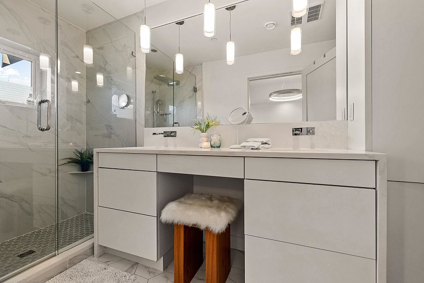 A masterclass in light & design, this charming 3bed+2.5bth side-by-side 1/2 duplex offers 1,840sqft of elevated living in the heart of Cedar Cottage. Expansive windows, custom California Closet throughout & 3 exposures create a bright sophisticated feel, while A/C & radiant in-floor heating offer year round comfort. Stunning kitchen w Caesarstone countertops, integrated appliances, Wolf gas range & abundant storage. Upstairs: 3 oversized bdrms, s/s laundry, skylights & endless light. Dreamy primary awaits w North Shore Mtn views, elevated ensuite, large walkin closet. Spacious 2nd&3rd bdrms w soaring ceilings, shared balcony & roomy closets. Indoor-outdoor living w accordion doors to S facing fenced yard. BONUS 883sqft crawl space. Detached garage w EV. Steps to Charles Dickens Elementary.