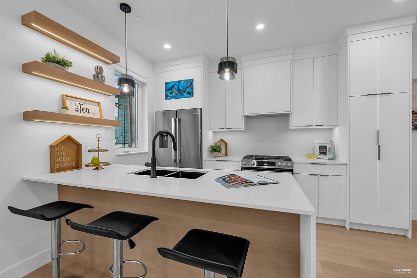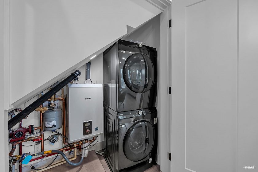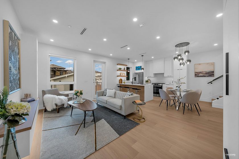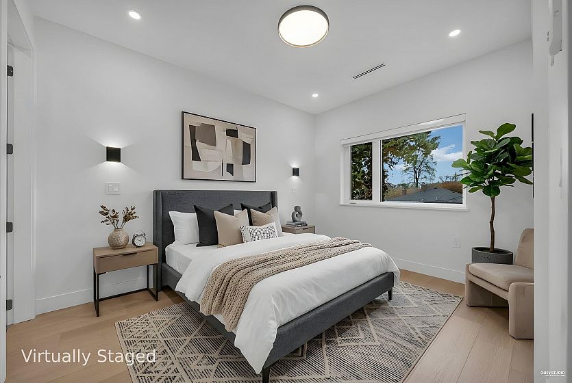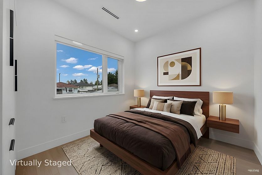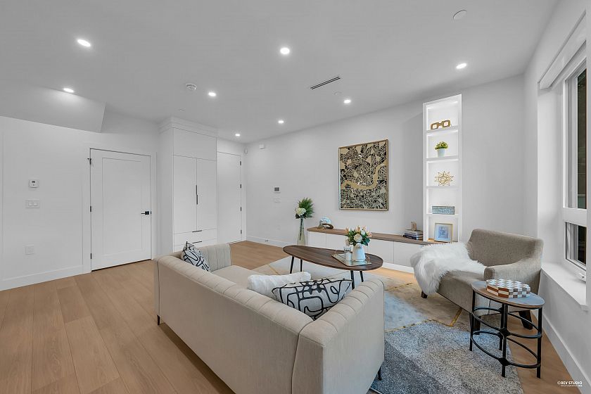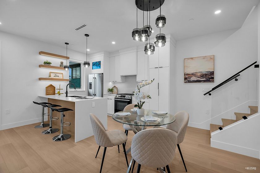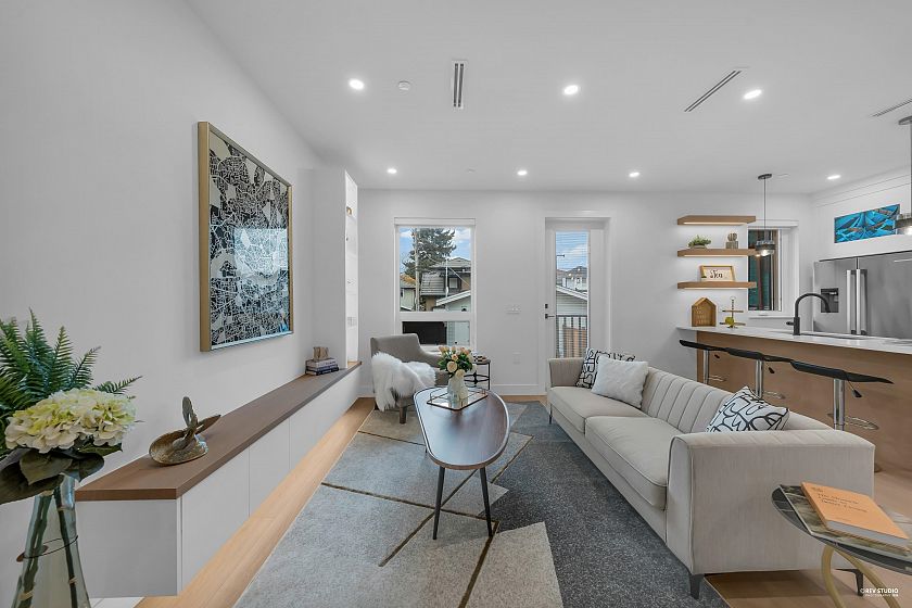 Brand-new northeast-facing BACK duplex offering 1,637 sqft of modern living w/a functional layout and quality craftsmanship. This well-built home features 3 spacious bdrms upstairs, 2.5 baths, and a legal 2-bdrm basement suite—perfect as a mortgage helper or for extended family. The open-concept main floor boasts a bright living and dining area, a stylish kitchen w/top-brand s/s appliances, including a gas range. All bdrms on the same level. Enjoy year-round comfort with a heat pump, HVAC system, and A/C. Includes single garage w/EV plus an additional carport parking space. Secured storage/locker under the porch. Private fenced backyard for kids or pets. Minutes to 29th Ave SkyTrain, parks, schools, shops, and restaurants along Kingsway. Open House Sun. May 3rd, 2-4PM