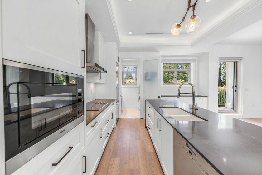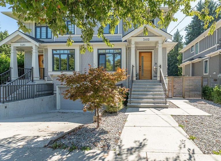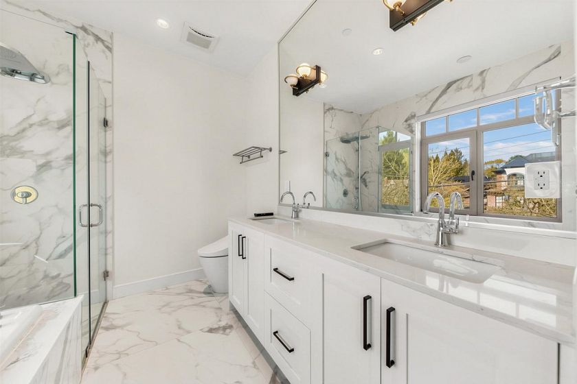 RARELY AVAILABLE duplex in the prestigious Dunbar & Kerrisdale neighborhood! Offering approx. 2,400 sq.ft. of well-designed living space with a single-car garage, this home sits on a beautiful tree-lined street in a quiet, family-friendly area. Steps to Crofton House School and close to St. George's, Magee, Point Grey Secondary, Kerrisdale Elementary, UBC, shopping, transit, and restaurants. Features a bright open-concept layout with a functional floor plan, 6 bedrooms and 4.5 bathrooms. Gourmet kitchen with high-end cabinetry, stainless steel appliances, and wok kitchen. Quality finishes include hardwood flooring, radiant heating, A/C, and HRV. Lower level offers a legal 2-3 bedroom suite as a mortgage helper. Private fenced backyard with landscaped garden and deck/patio. Must see!
