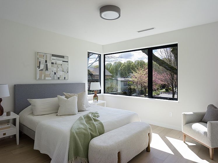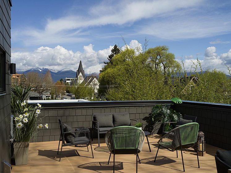 Come home to stylish & sophisticated two-level living with 3 generously sized bedrooms in this beautifully appointed half-duplex. Sited on a quiet tree-lined corner, this elegant residence offers entertainment sized living spaces, hardwood flooring and high-end fixtures & finishes throughout. The principal bedroom is a standout - plenty of room for a king size bed, with a double vanity luxury ensuite and an ample walk-in closet. In addition to the south facing patio & gardens off the main floor, there’s an expansive roof-top terrace with mountain views under the mature tree canopy - your private oasis equipped for entertaining! Thoughtfully designed by EDG Homes and built with care by GH Street Ltd, this brand new home is a standout! Viewings by appointment.