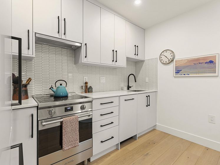 Surrounded by charming character homes in the heart of Mount Pleasant, this thoughtfully designed two-level COACH HOME blends modern comfort with timeless appeal. The upper level feels bright and airy, with vaulted ceilings and skylights enhanced by luxurious Hunter Douglas motorized blinds for ultimate ease and comfort. The beautiful kitchen offers sleek modern cabinetry, a hexagon tile backsplash, upgraded appliances, and stone countertops—perfect for everyday living and entertaining. Enjoy a delightful garden patch, a south-facing patio, an additional balcony, and a private single-car garage. Enjoy everything Mount Pleasant has to offer, with Robson Park and a fantastic selection of restaurants, cafés, and coffee shops just steps from your doorstep.