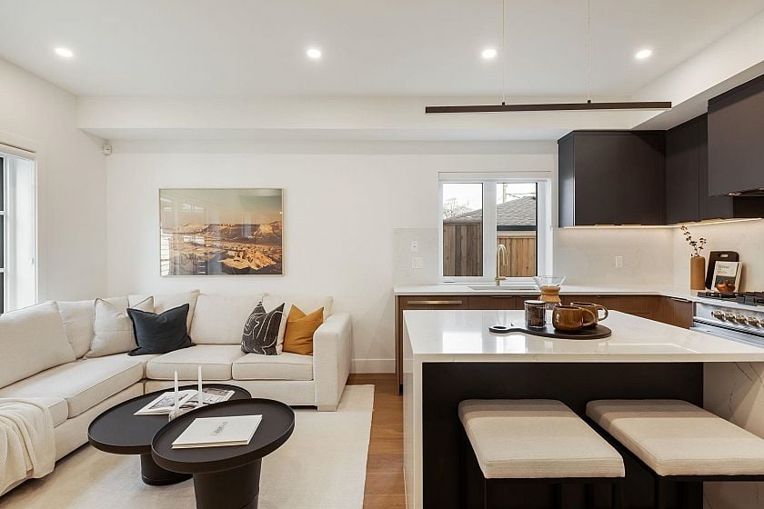 Nestled in Hastings Sunrise and steps to restaurants, groceries and shopping, this BRAND NEW 2 Bedroom & 2.5 Bath unit by Reach Properties brings together craftsman with modern styles. Thoughtfully designed this rear duplex style home offers your own front door, generous living area and large full size kitchen with integrated appliances, built in shelving and waterfall countertops. Upper floor boasts high vaulted ceilings along with glass railings, large windows and a skylight for all day natural light. Primary bedroom includes a full wall of built in cabinets and drawers, west coast spa-like ensuite and East facing views of city and mountains. Parking, Bike locker & full crawl space storage all standard. Ask about our LIMITED TIME OFFERINGS! OPEN HOUSE SUN APR 26th, 1-3pm.