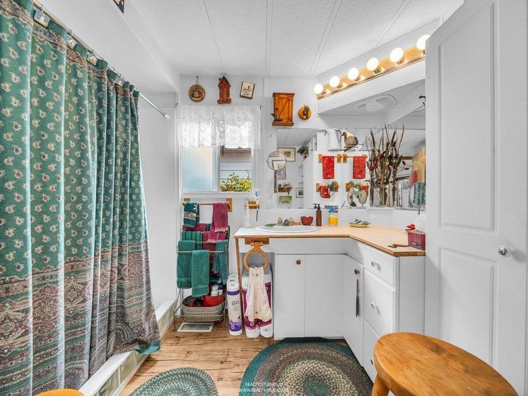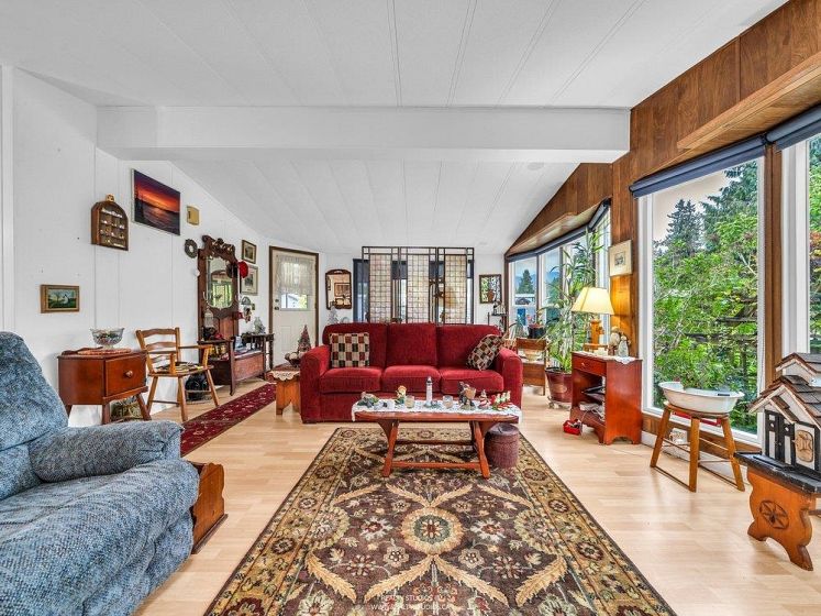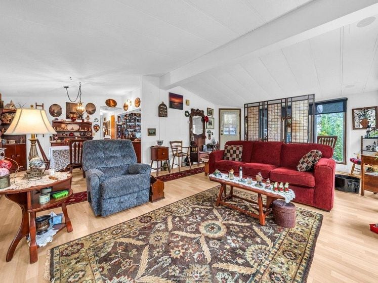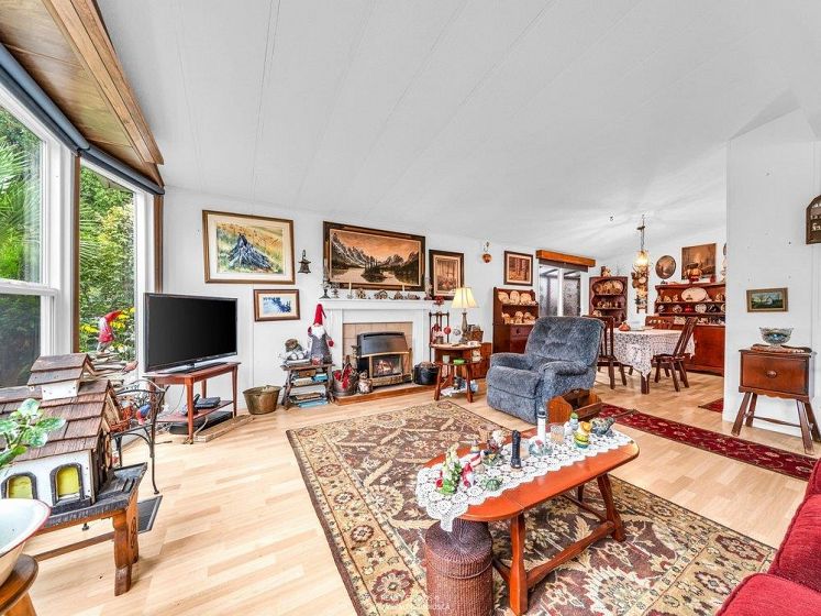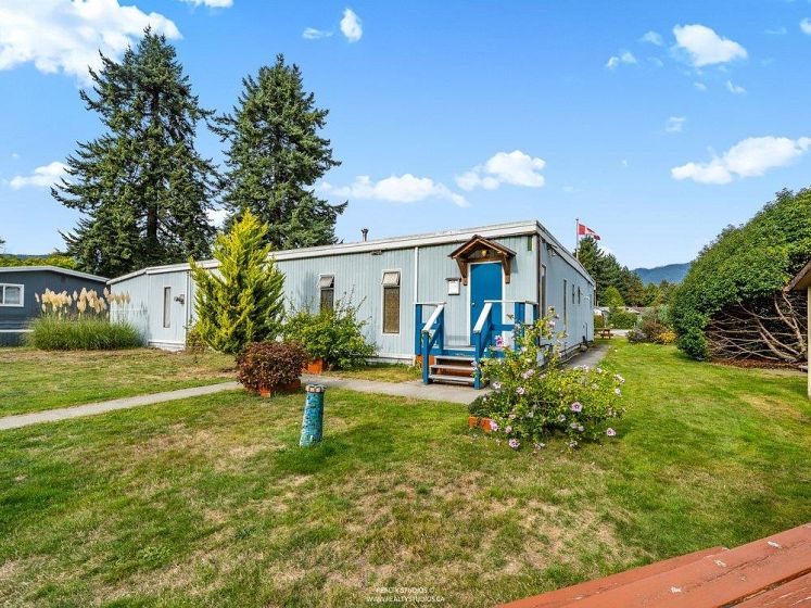 Very private & among the largest homes available at 1440 sq ft this Double Wide manufactured home sits on a quiet cul-de-sac in the Capilano Mobile Home Park. Vaulted ceilings and a lovely sun porch enhance this well cared for home with front & back yard garden areas. The spacious Primary bedroom is massive with primary bath shower & huge den/office area right beside. Open kitchen with new cabinetry & appliances also has a skylight for a bright functional feel and includes a nice outlook to the covered patio and entry area. Roof replaced in 2015. New furnace. This home also sits on a full concrete foundation. Must be 55+ to live here. No financing available. No rentals. Small pet is ok. Monthly pad rental fee of $960.50. Call or email first for park information and all showings.