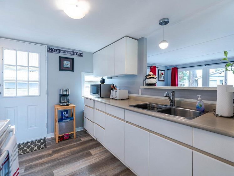 Live out your retirement years in the Beautiful Capilano Manufactured Home Park in West Vancouver along the Capilano River with convenient Park Royal Shopping Centre a few minutes walk away. Close to Downtown Vancouver and many hiking trails and beaches nearby. This fully renovated 1 Bedroom & 1 Bathroom home has an open plan layout with lots of flexibility. New roof and windows with easy care luxury vinyl tile throughout. This home is fully drywalled. Enjoy your days in the large yard (corner lot) and covered deck just off the dining room. Large primary bedroom could be split into 2 rooms. Must be 55+ to live here. No financing available. Small pets are permitted. No rentals allowed. Monthly pad rental fee is $960 and includes a basic cable package.