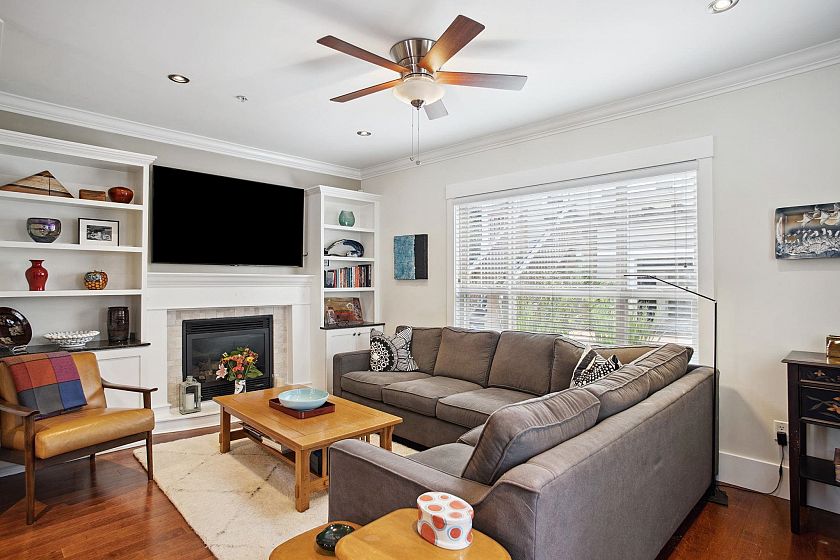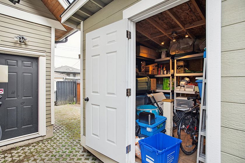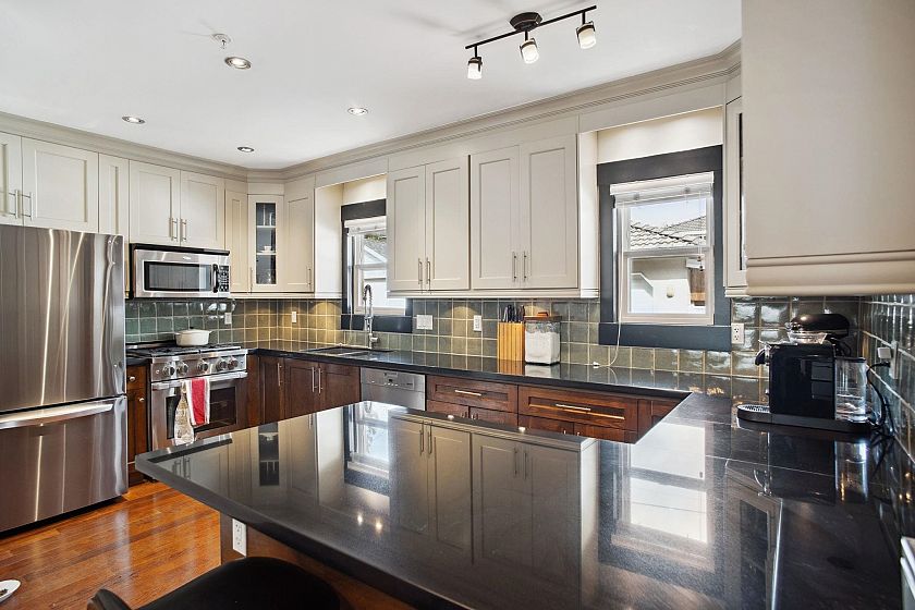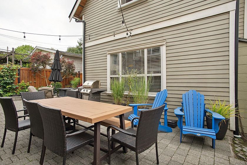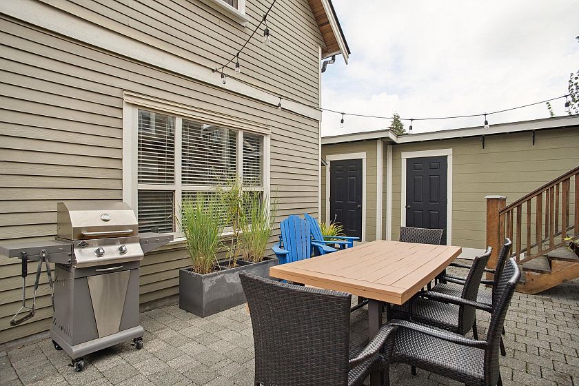 Welcome to this RARE Cedar Cottage COACH HOUSE nestled in a vibrant family-friendly neighborhood! This open-concept main floor features a Bright living room with Large windows, custom built-ins & a cozy gas fireplace. The updated kitchen boasts high-end S/S appliances, including a NEW Gas Range Stove, LG Fridge & Miele Dishwasher, along with granite countertops, ample cabinet space & NEW Miele Washer/Dryer. Master bedroom offers an ensuite bath & walk-in closet, while two additional well-sized bedrooms share a convenient "Jack & Jill" bathroom - perfect for kids. Parking & Storage. Relax on the spacious LARGE South-facing front Patio with Shared Garden! Nearby Charles Dickens Elementary & More!