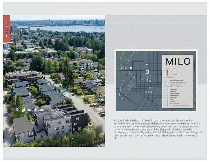 A rare North Shore development opportunity—demo-ready with building permit imminent and staged approvals allowing construction to start right away. This boutique 18-unit townhome collection (21,123 sq ft buildable) features a family-focused mix of 1, 2, 3, and 4 bedroom homes with rooftop decks, flex spaces, EV-ready underground parking, and thoughtful low-rise design. All marketing materials and the Disclosure Statement are complete, enabling a fast launch. Set steps from the new Harry Jerome Rec Centre, this premium location benefits from strong demand, limited supply, and exceptional long-term neighbourhood value. https://miloliving.ca/milo/