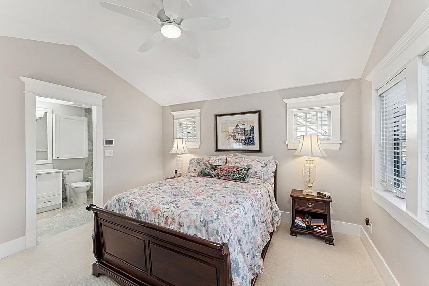 Enjoy all the benefits of a detached home with the convenience of townhouse living on this extraordinary 4-unit strata in prime Ambleside. The development consists of the original Rush House heritage home with a separate strata basement suite & two detached homes. I am pleased to present this Craftsman-style residence offering single-family living without the concern of garden maintenance. The 3-level home shows beautifully with 4 bedrooms, 5 bathrooms, & a delightful spacious kitchen, dining & living area on the main. Developed by respected architect Michael Geller with Trasolini Construction. Bonus: EV charging in the garage & surge protection on the electrical panel. Close to great schools, shopping, and transportation. Monthly maintenance fee is $1,387.10.