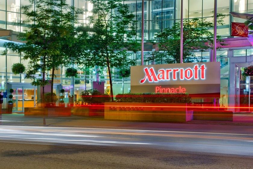 HOTEL STRATA ownership at the prestigious Vancouver Marriott Pinnacle Hotel in desirable Coal Harbour. Professionally managed property sharing net revenue from hotel rental pool (guest rooms + restaurant + function room + ballroom income). Owner use benefits include up to 30 nights stay/year, access to the gym/indoor pool and discount at restaurant. This is an upper-level room with occupancy for 4 with city, mountain and water views. Great opportunity now to benefit from the FIFA World Cup, cruise ship season etc. Please note this is NOT a private residence.