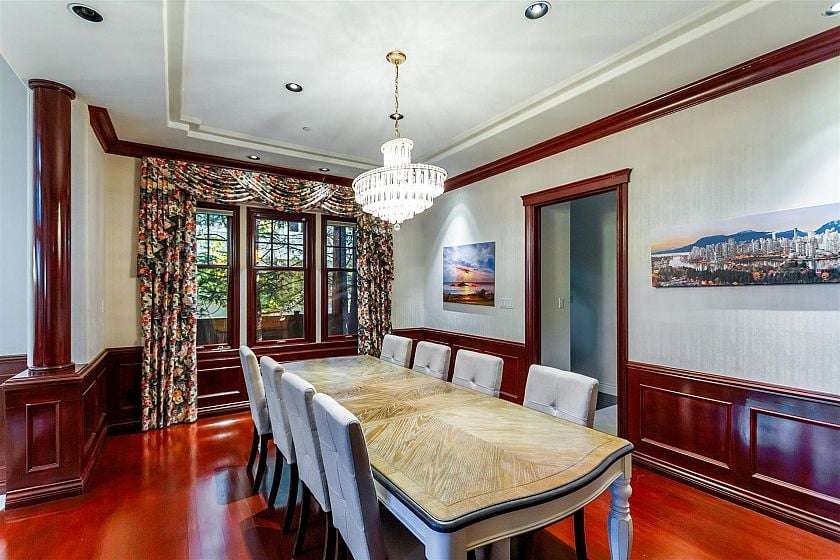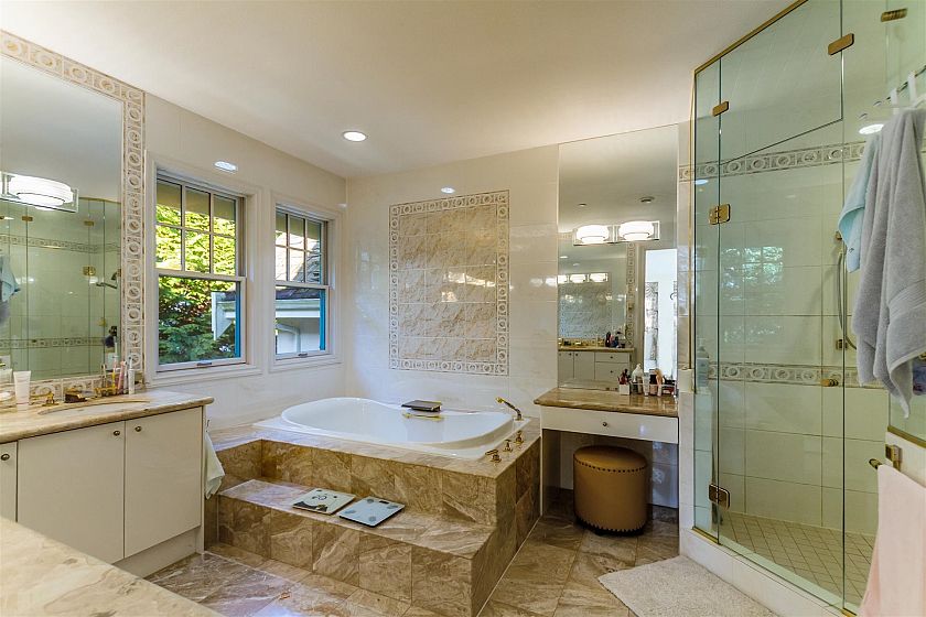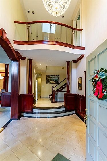 The First Shaughnessy custom built 1993 mansion offers approx. 6,800 sq ft of elegant living area on a gorgeous 80' x 200' mature landscaped yard. Main floor has a grand foyer with over 20' high ceiling & chandelier, bright living & dining room with high ceiling & hardwood floor, spacious kitchen with wok room and nook opens to entertainment sized family room, a guest room w/ensuite & an office. 4 bedrooms up all with ensuites including a huge master suite with sitting area. Basement has a recreation room with a wet bar, a bedroom & tatami room which can be converted to an extra bedroom. Southern facing backyard w/lane access. A gem in the most prestigious 1st Shaughnessy location. Walk distance to Shaughnessy Elem. York House, LFA.