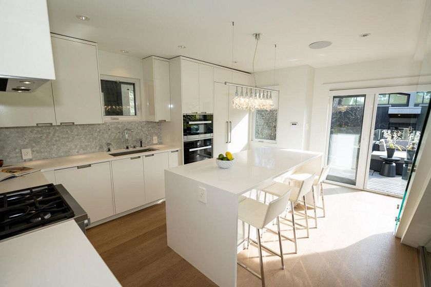 Rebuilt to the studs in 2006, and loaded with contemporary updates, this spectacular home is ideal for modern family living! Brilliantly redesigned with meticulous attention to detail, it features generous living areas, sleek built-ins and top of the line finishes throughout. A striking glass stairway divides the family room and chef’s kitchen, and French doors open to an expansive deck and beautifully landscaped sunlit yard. Lower level with gym, kitchenette & TV area is easily converted to a suite. The steel-framed laneway house is an architectural gem, with Eclipse doors opening to the sunny yard that allow it to double as extra living space or income source. All this on a perfect tree lined street close to some of Vancouver’s best schools. OPEN HOUSE SATURDAY JULY 26, 2 - 4PM.