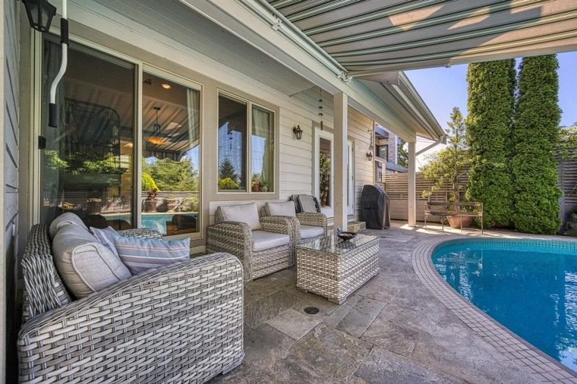 Elegant renovated family home in picture perfect move-in condition, overlooking Arbutus Greenway & Riverside Park. Spacious din & liv rooms, gleaming hardwood floors throughout, gas f/p, with French doors opening to a solar-heated pool & spa! Gourmet kitchen with granite counters & top tier appliances. Main floor features a primary bdrm with walk-in closet + ensuite (currently used as a fam rm). Bonus- an office/den/or additional bdrm on the main. Upstairs offers another king-size primary suite with spa-like ensuite with a joining office/den or potential 4th bdrm. Plus additional large bdrm also with full ensuite. Double garage, beautifully landscaped front & backyards- a true gardener's delight!Soak up the sun in style. Ideal for families & entertainers