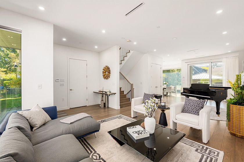 A rare opportunity in Point Grey! This three-level luxury home faces Trimble Park and offers stunning ocean and mountain views. Built in 2022 with top-quality craftsmanship, it features geothermal heating, a double garage, beautiful covered patio, and solid hardwood flooring throughout. The home has 6 bedrooms and 5.5 bathrooms, perfect for family living. There's also a legal suite that can be used as a rental unit or transformed into a home theatre. Located near top-rated public and private schools, including West Point Grey Academy , and just minutes from shops and amenities. The current owner built the home for personal use with no expense spared. Don't miss out-book your showing before its gone! Open sat-sun June14-June 15 .Offer if any on tuesday June 17.2025 First showing open house