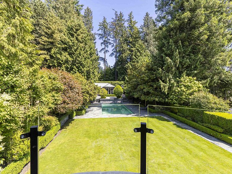 Secluded within Kerrisdale's prestigious enclave, this architectural masterpiece by Formwerks offers unparalleled luxury on a sprawling 18,631 sqft estate. The magnificent 7,775 sqft residence showcases sophisticated Westcoast modern design, embraced by mature trees and exquisite landscaping that creates a private sanctuary. The home presents 6 bedrooms and 8 bathrooms, while floor-to-ceiling windows frame the serene outdoor paradise featuring a resort-style pool,and dedicated pool house. Main floor features spacious principal rooms with chef's kitchen,anchored by a magnificent 16-foot stone island, exemplifies the home's commitment to sophisticated entertaining. Upstairs find 4 beds including spacious master retreat. Basement features large living room, media room, and wine cellar.