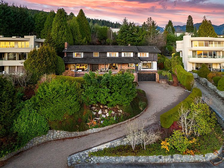 Own a world-class estate with breathtaking 180° south-facing ocean and iconic Vancouver skyline views. Located on the prestigious Golden Mile, this .569-acre property sits high on King Georges Way. A rare opportunity for builders or renovators—build your dream home or refresh this solid, one-owner, Tuscan-inspired 4,300 sq.ft. residence with Mediterranean flair. Features include 5 spacious bedrooms, 3 bathrooms, elevator, vaulted ceilings, 4 fireplaces, and grand entry. Near top public/private schools, Hollyburn Country Club, 3 ski hills, Park Royal, and the Seawall—just 15 minutes to downtown Vancouver. Priced below assessed value. Open House Sunday August 10th 2-4pm