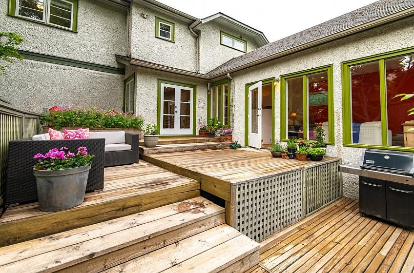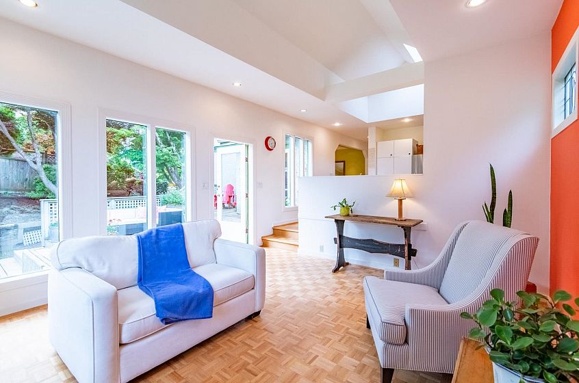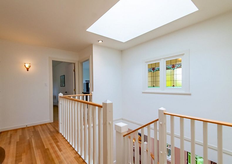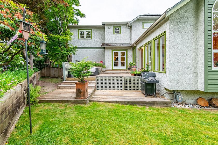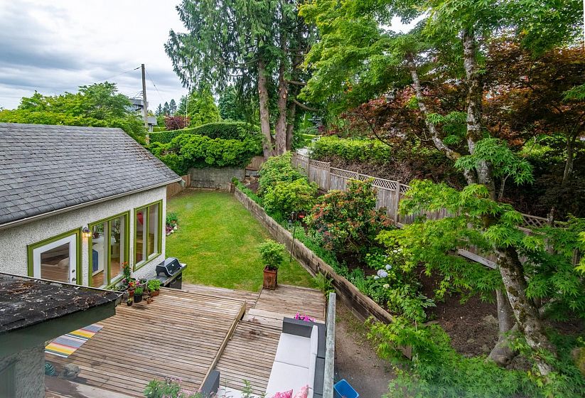 Charming Arbutus character home with modern upgrades & S/C suite on a quiet tree-lined street. Thoughtfully renovated top-floor addition by Farpoint Architecture (1999), w/ 5 BRs, 4 bths & blending vintage charm w/ modern comfort. Features inc. beautiful, refinished oak floors, stained glass windows, vaulted ceilings w/ skylights, & a private MBR w/ WiC, large enste bath & city/mountain views. Bright, spacious layout w/ skylit kitchen, & cozy family room w/ vaulted ceilings , opening onto private deck overlooking beautiful garden w/ mature trees & shrubs. Upgrades inc. roof, windows, electrical, furnace, flooring, paint, appliances, & more. An ideal family home only steps to top schools, parks, shops, restaurants, transit to UBC & YVR & a new French bakery. Single garage.