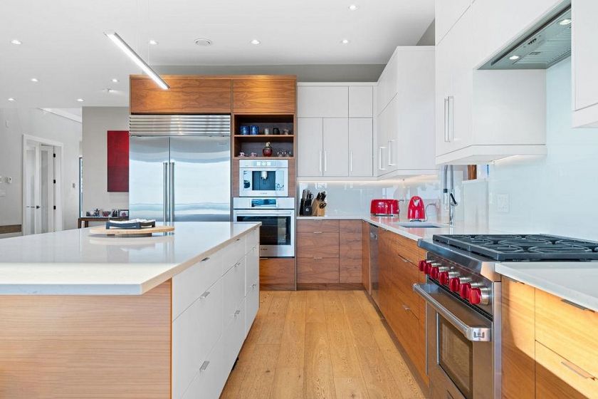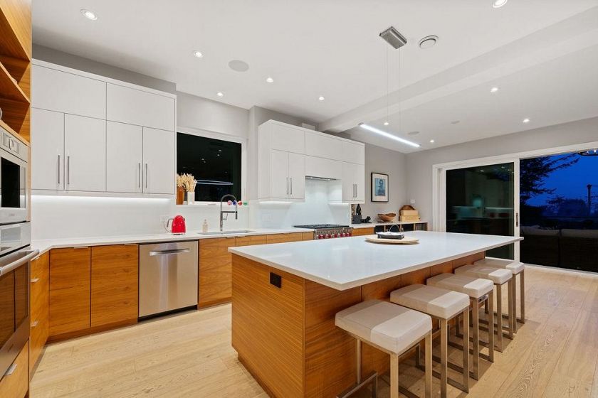 Opportunity Knocks! Wow! This stunning home overlooking Vancouver is a very special "one of a kind" property at the very top of Lonsdale. An entertainers delight with an expansive main living area which opens onto the oversized covered deck is exceptional and unique. The attention to detail including grain to grain cabinetry, Sonos sound system in & out and throughout. There's a spice kitchen too, great for catering larger groups. For family's there are 4 bedrooms upstairs, all bedrooms are ensuited for added privacy. The primary suite encompasses the entire south side of the upper floor including it's own private deck. The lower floor is open and offers a games room & media area plus a legal suite. All this, in one of Vancouver's premier locations.